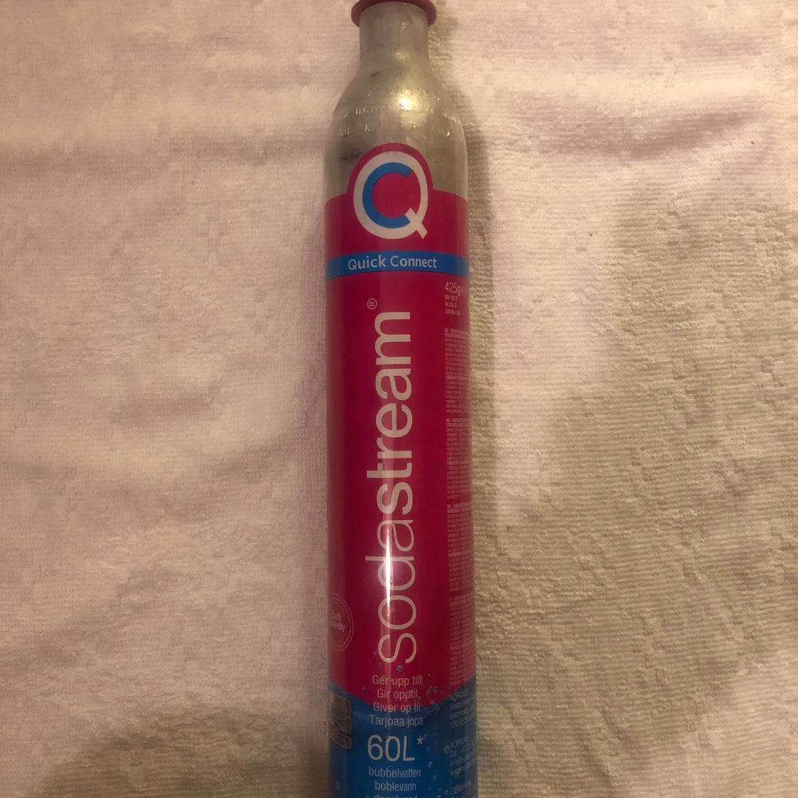 SodaStream Quick Connect gascylinder för kolsyremaskin, räcker till ca 60L bubbelvatten. Flaskan är i gott skick med mindre yttre slitage. Perfekt för att enkelt göra kolsyrat vatten hemma.Fullladdad!
