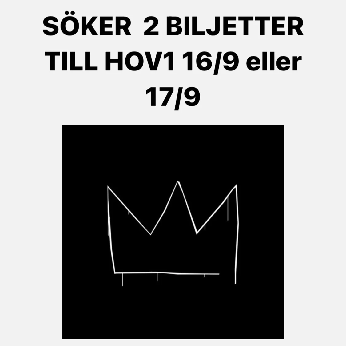 Söker två biljetter till 16/9 eller 17/9 skriv gärna om ni har eller känner någon som säljer ❤️❤️❤️