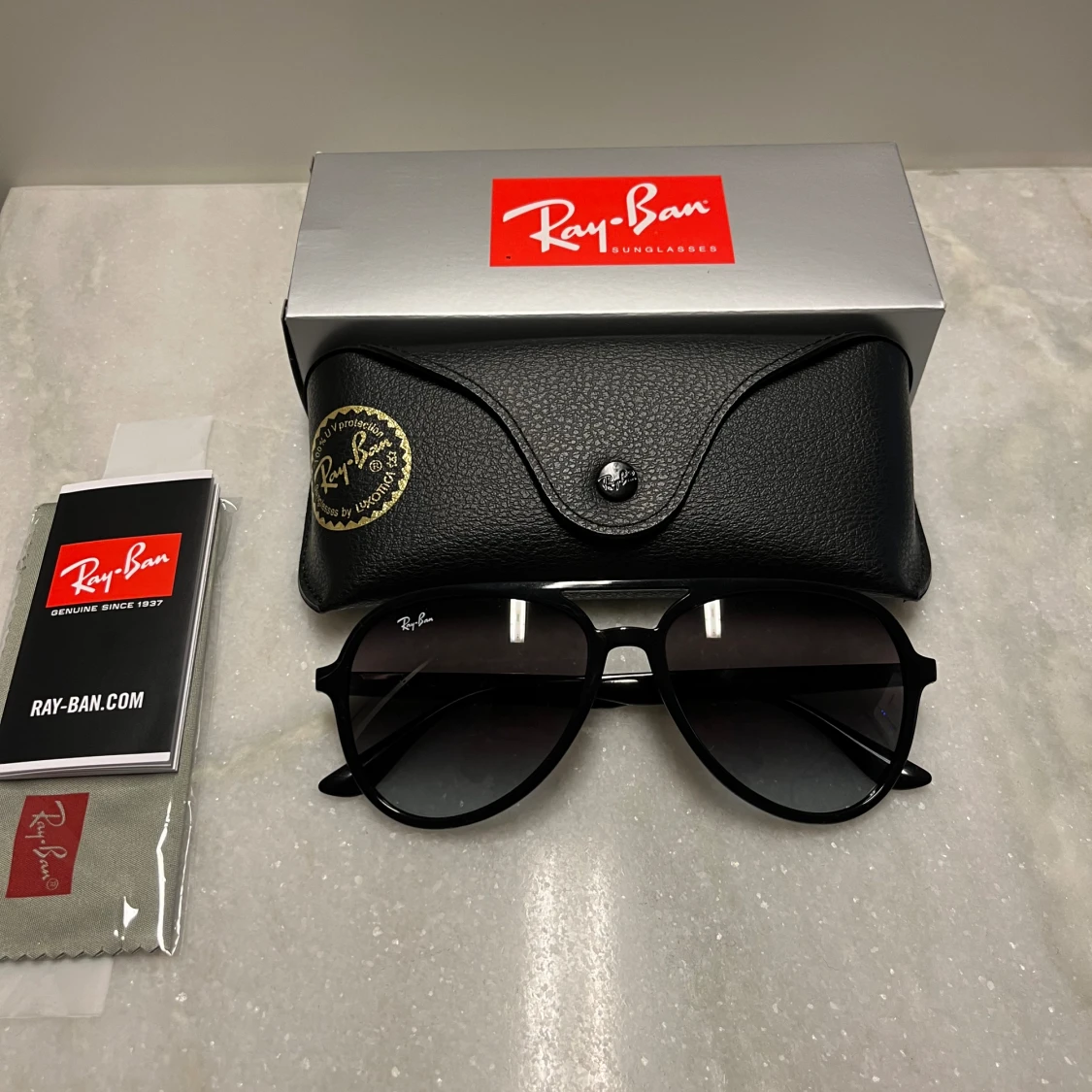 Ett par riktigt snygga Rayban cats solglasögon i färgen svart. Endast använda en gång, då dem ej riktigt passade mig (inga defekter). Alla tillbehör + box ingår. Nypris: 1278kr