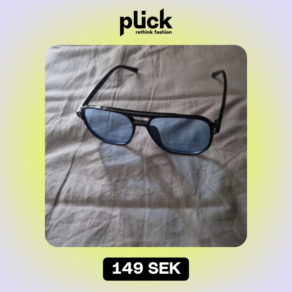Snygga solglasögon med ljusblått glas och svarta bågar ger en cool och unik touch! Vill du ha mer info om dem tveka inte att fråga!