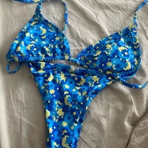 Säljer denna SUPER fina bikinin🦋 Endast testad men passar inte riktigt i blå färg så därmed är den helt ny🌸Frakt ingår!! Det är ett M men skulle nog säga att det är ett S eller en tajtare M