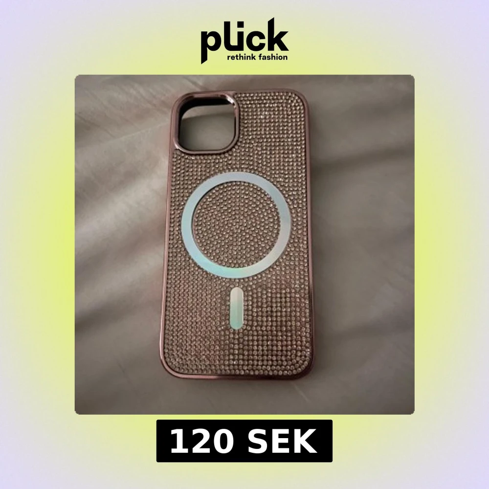 Säljer ett snyggt mobilskal med glittriga stenar och MagSafe-kompatibilitet. Skalet är rosa med massor av små stenar som ger en lyxig känsla. Perfekt för dig som vill ha något extra till mobilen!