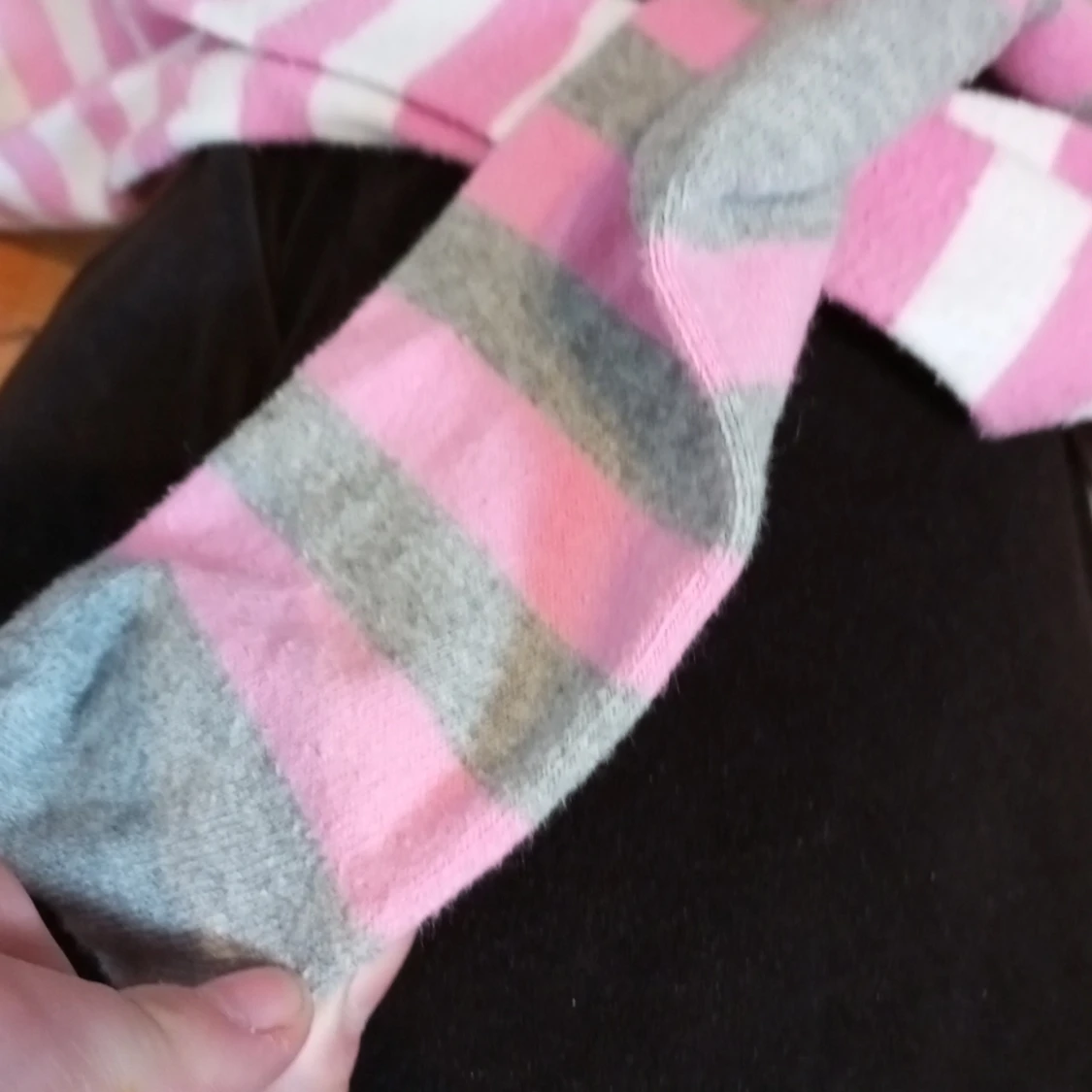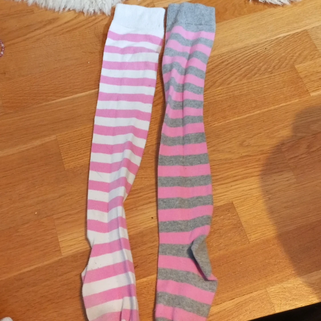 Jätte fina knästrumpor i nyskick. Jag har tappat bort den ena gråa och den ena vita så man kan matcha dom. Det ser jätte gulligt ut när man har en grå och en vit. Grå använd en gång vita två gånger.