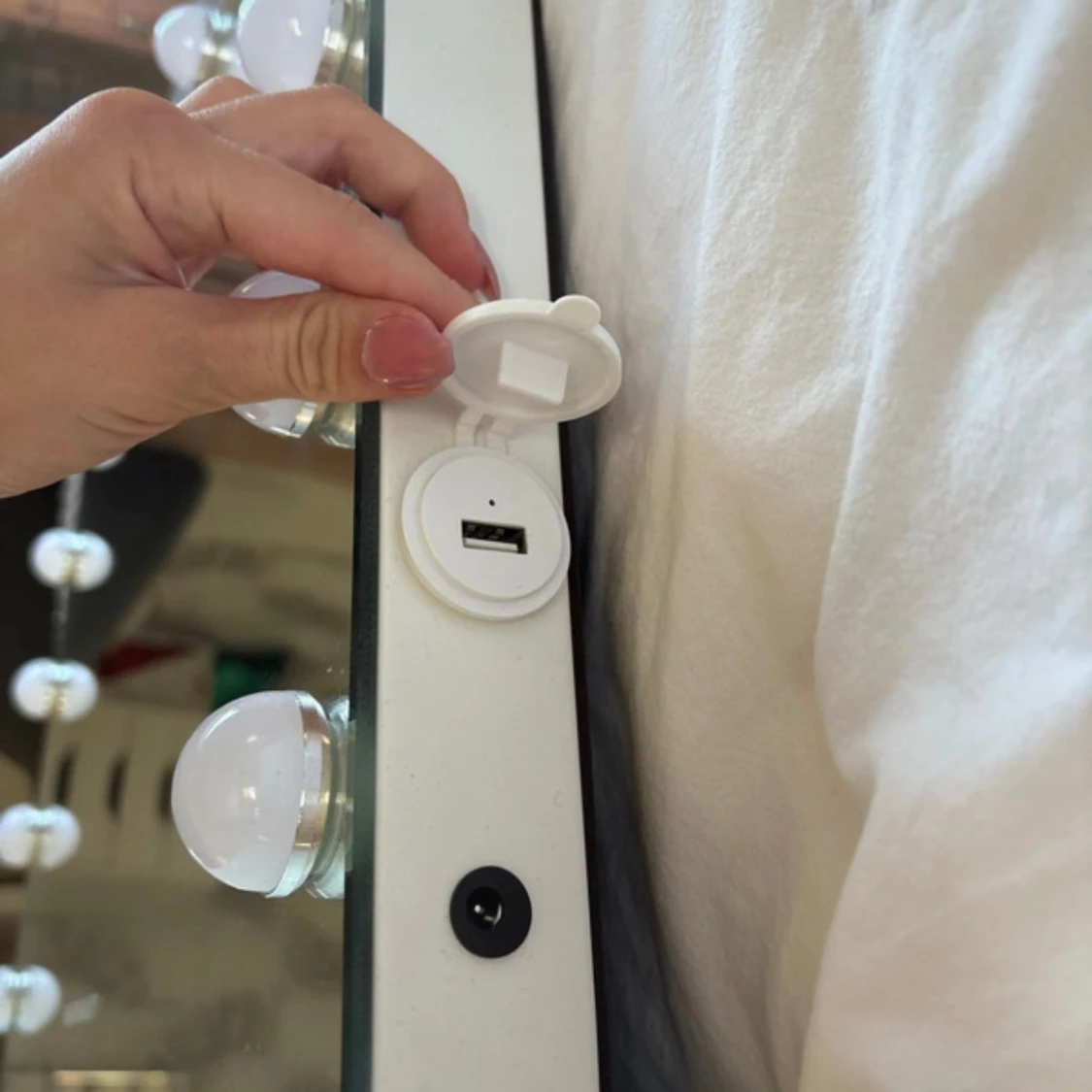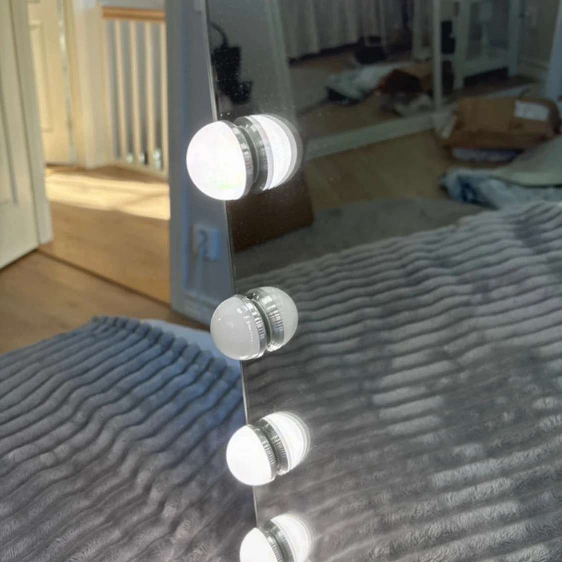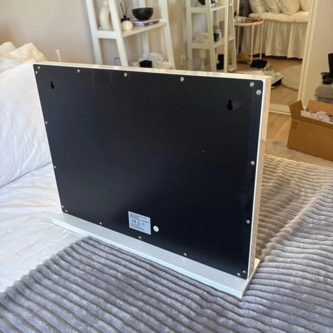 Säljer en jätte fin spegel från bright beauty som är alldeles ny! Ända är att en av lamporna inte fungerar som ni ser på dom 2 sista bilderna. Men annars jätte fin, bra och populär spegel! Den har en platta under så man kan ställa den men man kan även skruva bort plattan och hänga upp spegeln på väggen. På sidan sitter sladden och man kan även ladda sin mobil där. Den har 3 olika ljus. Kallt, varmt och dags ljus! Den kostar 900kr orgenalpris. Den är 58 cm lång och 46 cm hög. Hör av er vid frågor
