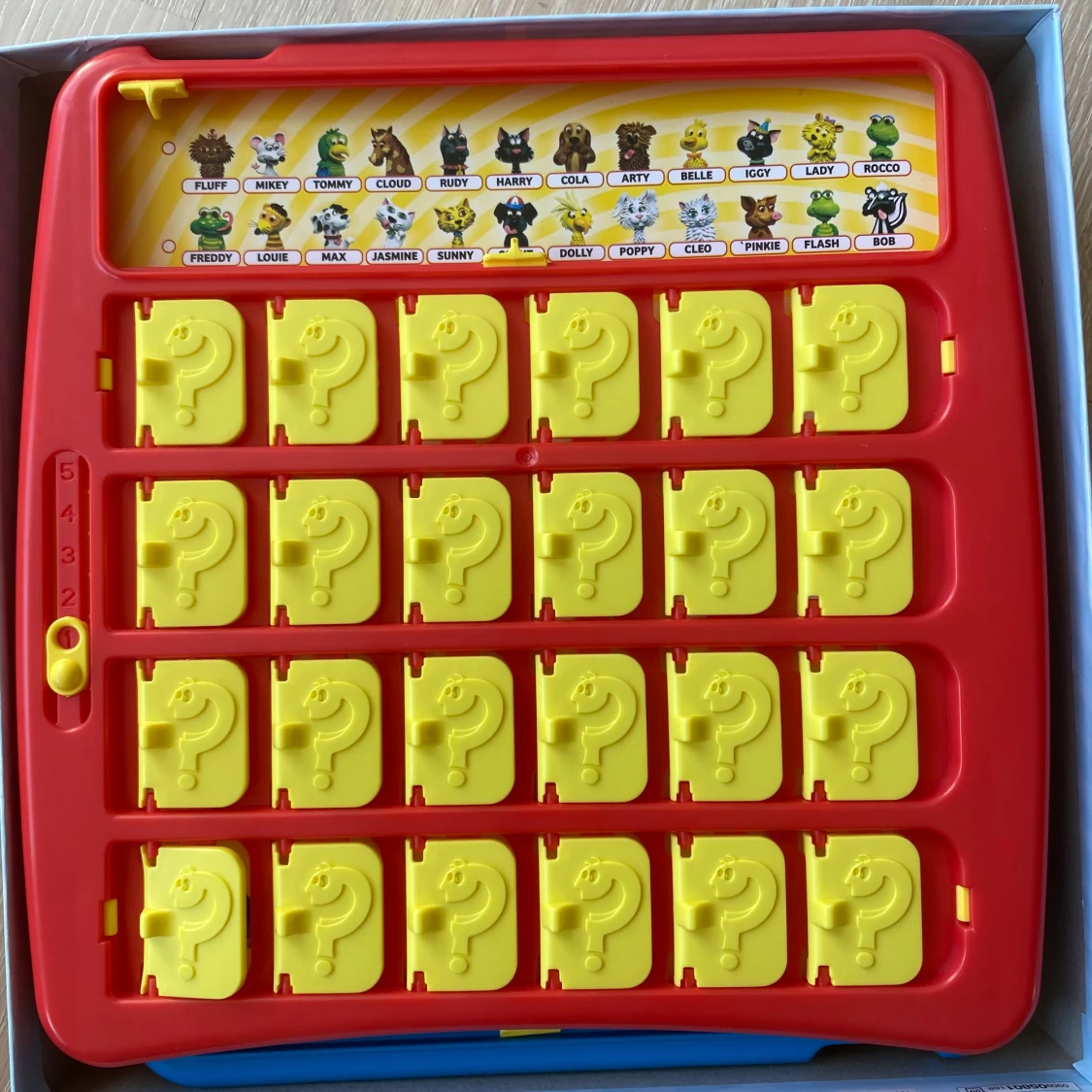 Klassiska gissningsspelet ”Vem Där?” i bra skick. Komplett med två spelbräden och figurkort med både människor och djur. Passar för barn från 6 år och uppåt. Alla delar är hela och spelet är redo att användas direkt! 😇