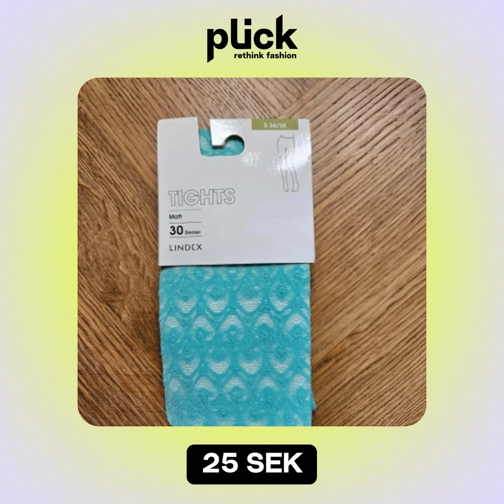 Turkosa strumpbyxor från Lindex med mönster. Strumpbyxorna har en tjocklek på 30 denier och är tillverkade av 86% polyamid och 14% elastan.