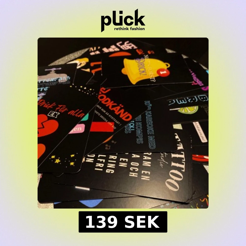 Ett roligt och utmanande kortspel med olika uppdrag och frågor. Perfekt för att liva upp festen eller en kväll med vänner. Innehåller kort med text och illustrationer i färgglada mönster. Kommer i en svart påse som skydd. 💗 finns bara ett få tal kvar så passa på o köp!