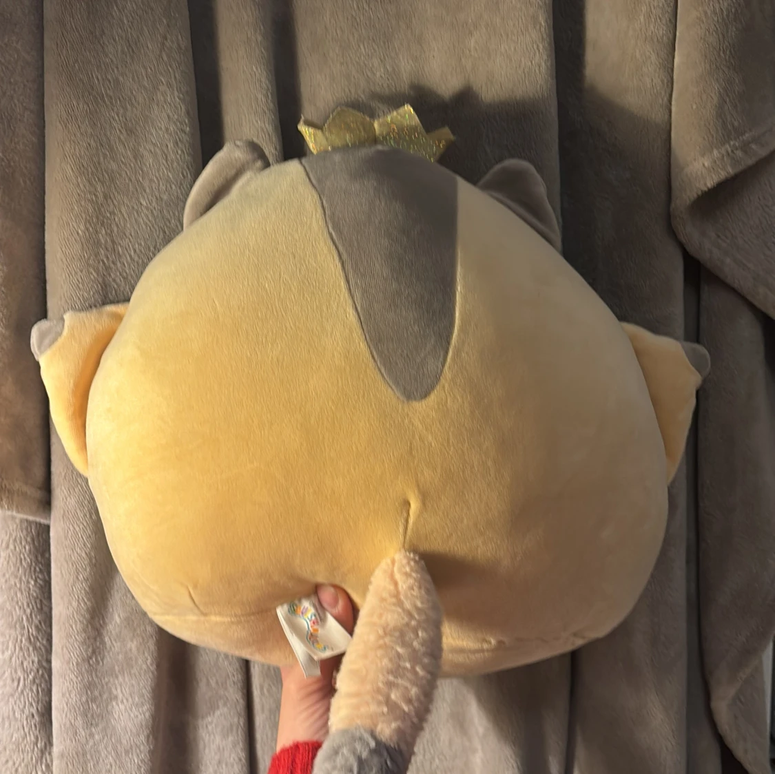 Supermjuk och gosig Squishmallows plyschdjur i form av en ekorre med krona. Perfekt som kudde eller dekoration. Originaletikett finns kvar. Fint skick, inga synliga defekter eller slitage. Passar både barn och vuxna som älskar mjuka gosedjur.