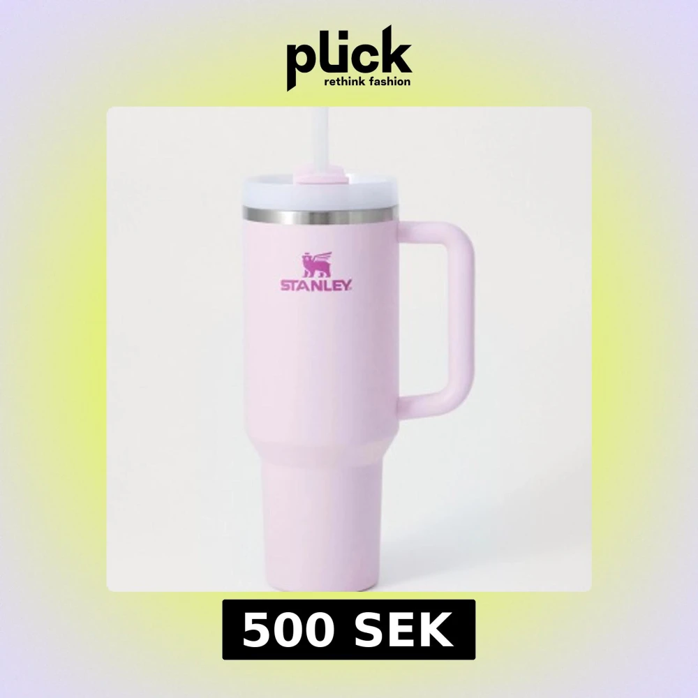 Stanley Quencher H2.0 FlowState Tumbler i pastellrosa, 40oz. Utrustad med handtag, lock och sugrör. Perfekt för kalla och varma drycker. Produkten ser ut att vara i nyskick utan synligt slitage eller defekter. Modern design och hög kvalitet.