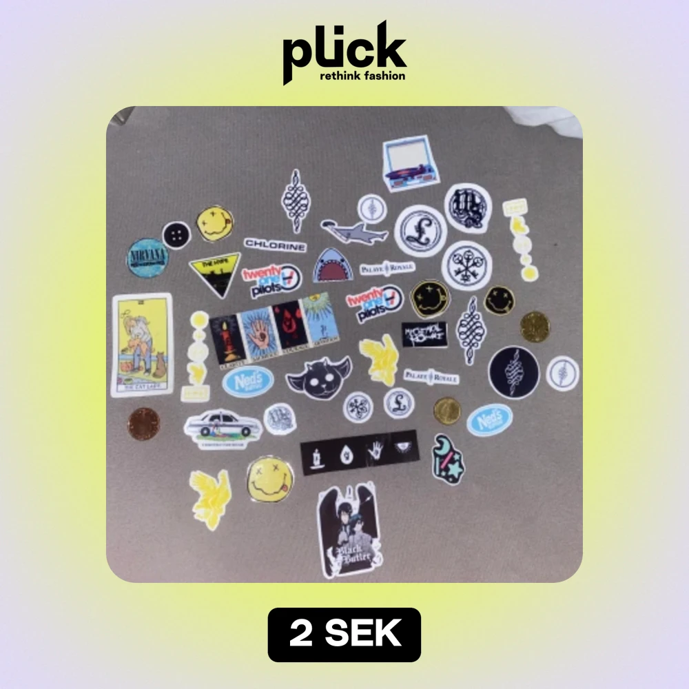 Massor av klistermärken. Mynten är som referens för storlekarna. Pris/klistermärke är från 2-5kr. 2 kr för de små som tex Palaye royale L klistermärket. 5 kr för tex the cat lady klistermärket och black butler klistermärket. Skriv vilken du vill ha!