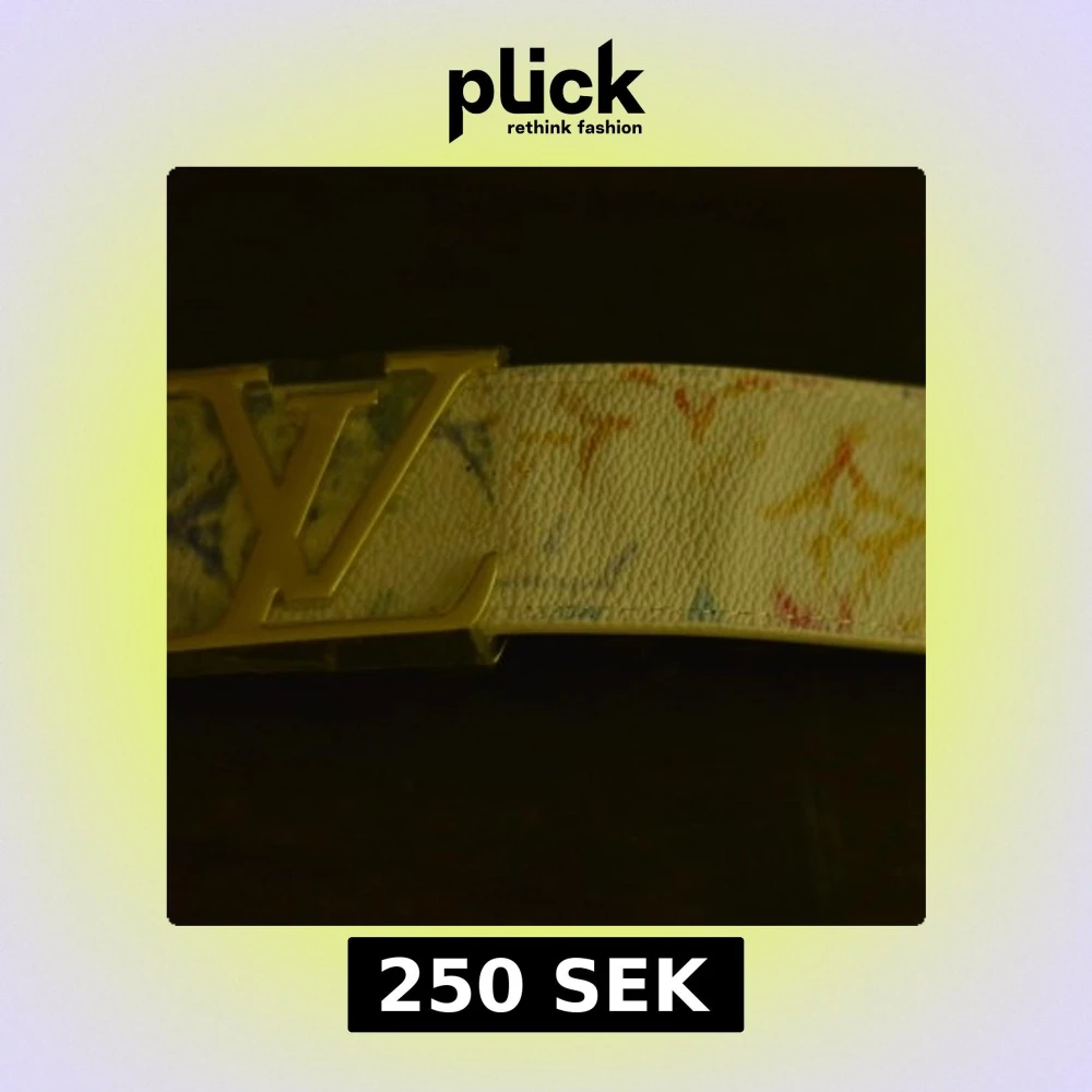 Snyggt vitt bälte från Louise Vuitton med ikoniskt spänne i guld. Bältet har färgglada monogramdetaljer i blått, rött och gult på präglat skinn. Insidan är ljusbrun och bältet känns lyxigt och trendigt – perfekt för att lyfta din outfit.