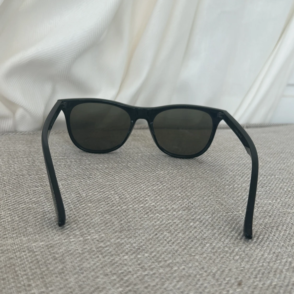 Klassiska svarta wayfarer-inspirerade solglasögon med glansig båge och mörka glas. Snygg och tidlös modell som passar till allt. Snygga silvriga detaljer vid fronten. Perfekta för att lyfta din stil under soliga dagar.