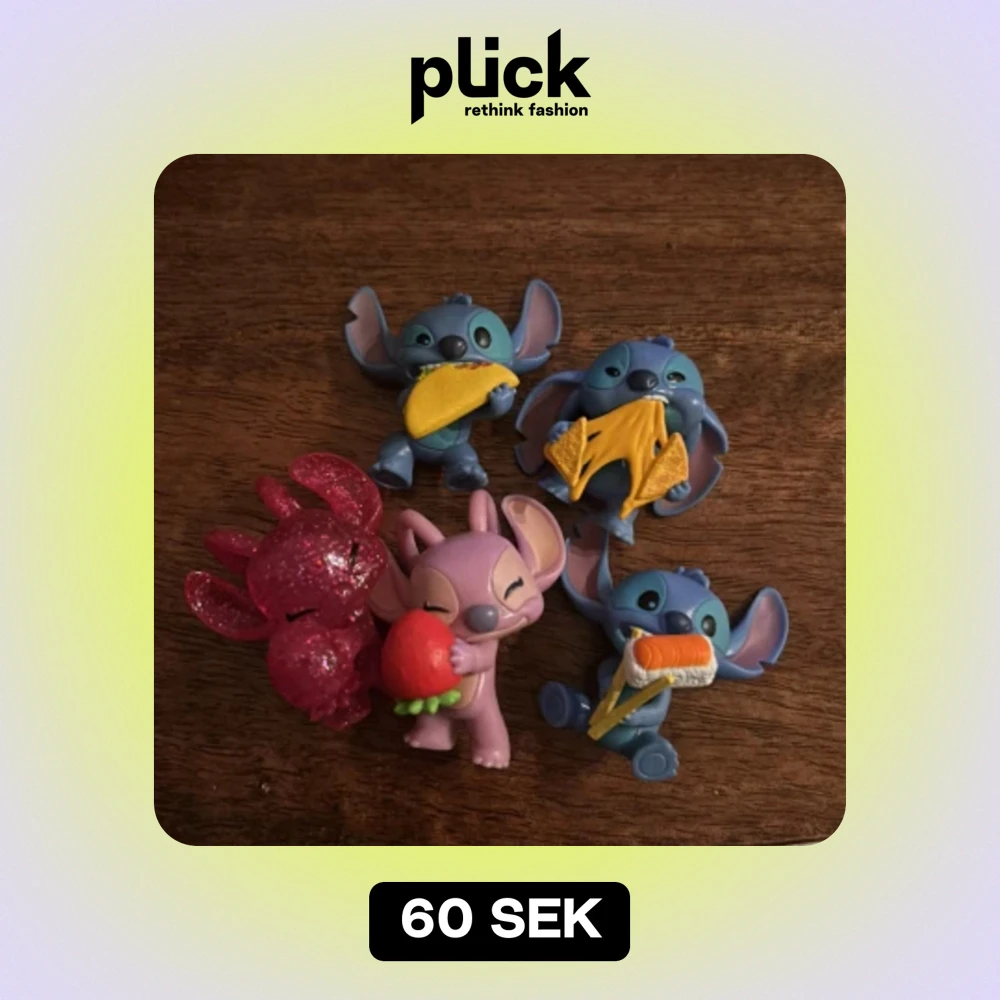 Stitch figurer har bara varit prydnad på min hylla. 60 kr för alla Stitch figurer.
