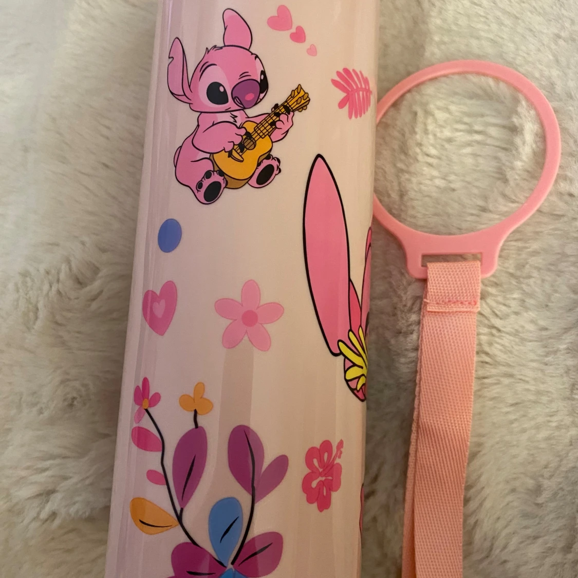 Rosa vattenflaska med motiv från Lilo & Stitch, helt ny