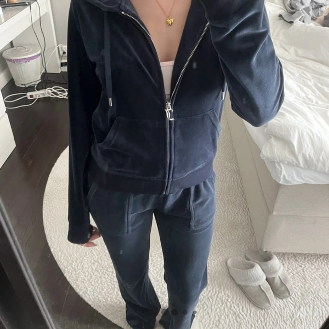 Säljer mitt marinblåa juicy set. Bra kvalitet och använt endast några gånger Köpare står för frakt