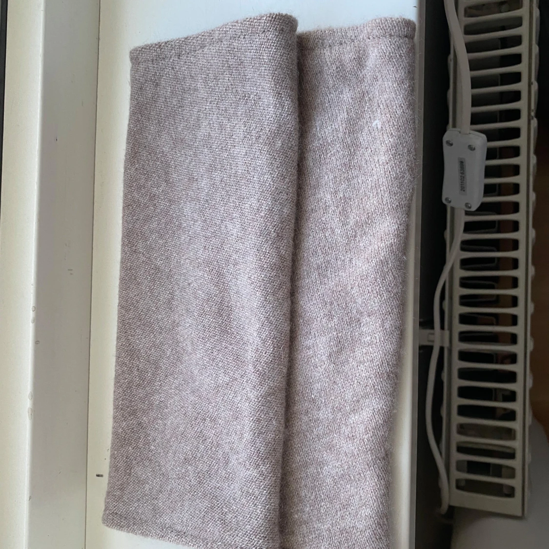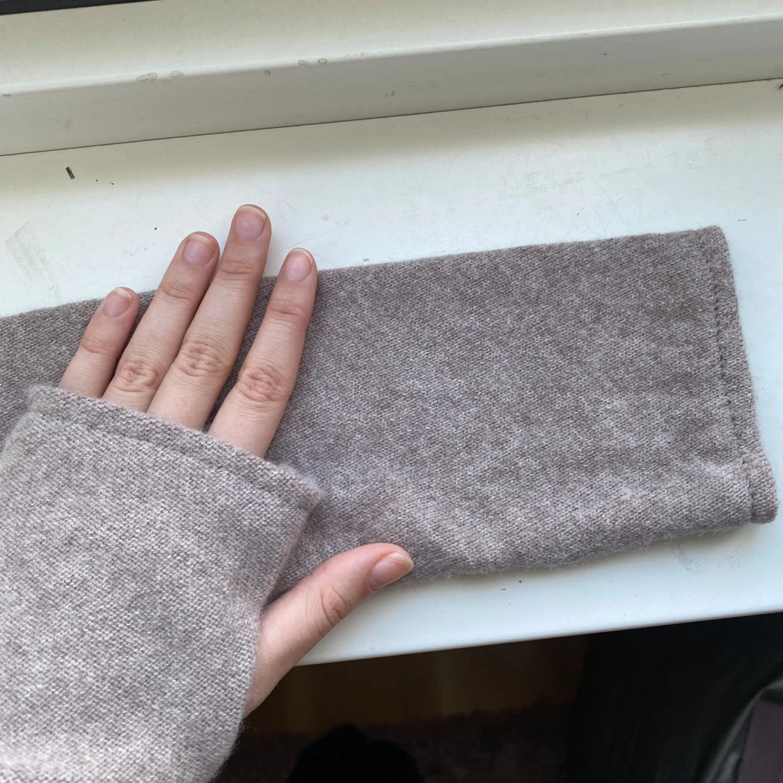 (säljer fler, kolla profilen)💕Egen sydda 100% kashmir handledsvärmare/torgvantar i en fin beige färg. Vantarna är jätte mjuka och har inga defekter, perfekta nu till kylan😊 Jag har själv sytt de och kashmir är ett svårt matrial att jobba med så ta det i åtanke och pruta gärna inte😅🙏🏻 Nya 100% kashmir vantar kostar ca 700 kr men här får ni för halva priset!!❤️ SÄLJER FLER, även i grått!