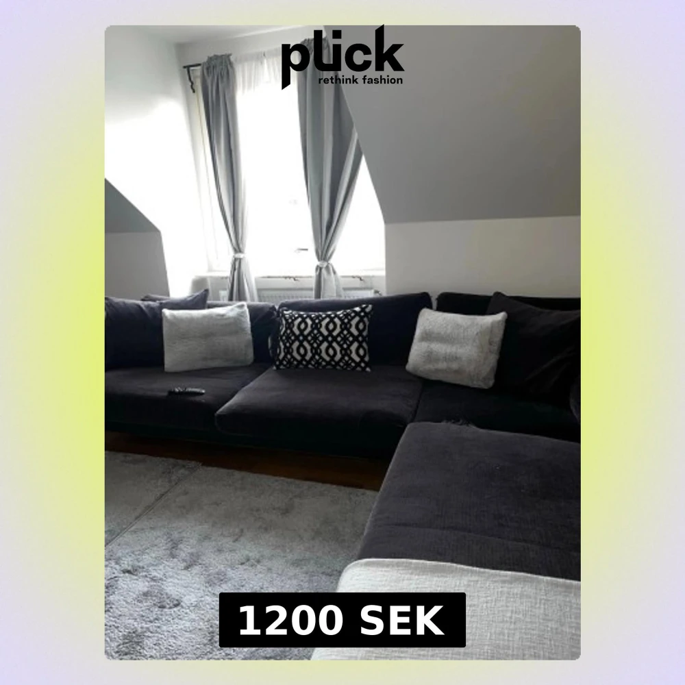 En jätte fin L soffa som är svart/mörkgrå aktig pch har några skador på tyget på kudarna som man själv kan sy ihop ifall man årkar men de inget som syns så mycket till soffan tillkommer en rund pal vill sälja soffan snarast hör gärna av er för mer info