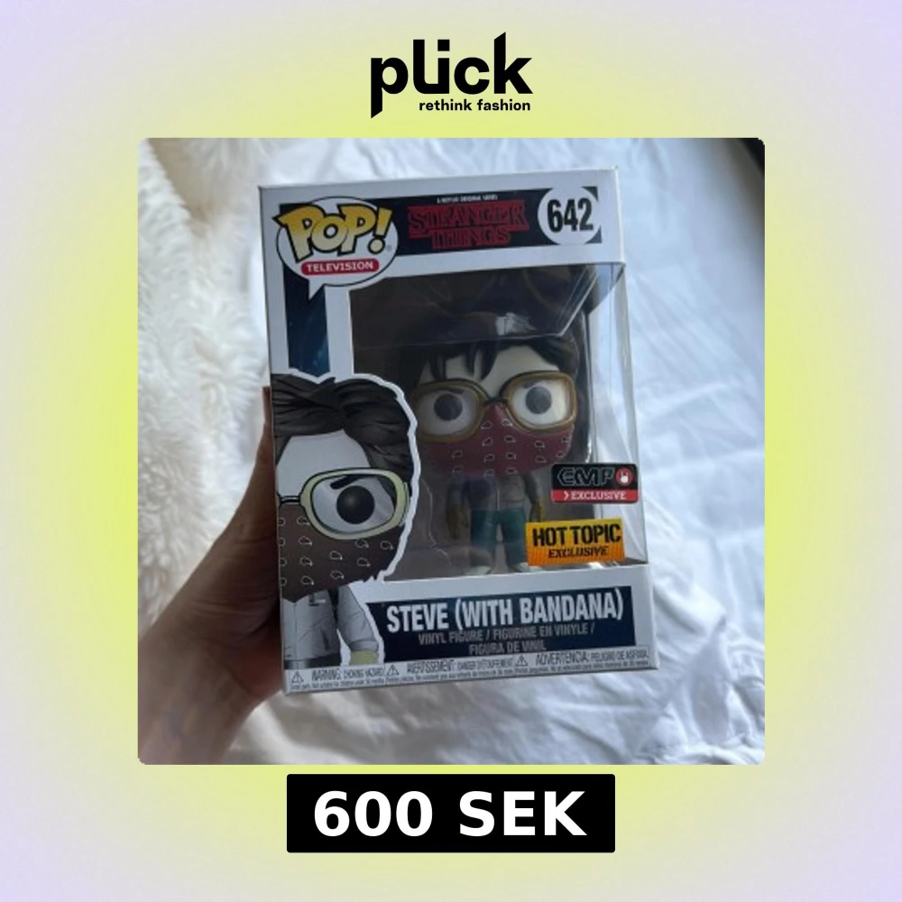 Cool Funko Pop! vinylfigur av Steve från Stranger Things, med bandana och glasögon. Perfekt för fans av serien som vill ha något unikt i sin samling. Limited edition med exklusiva klistermärken från EMP och Hot Topic. Pris kan diskuteras!