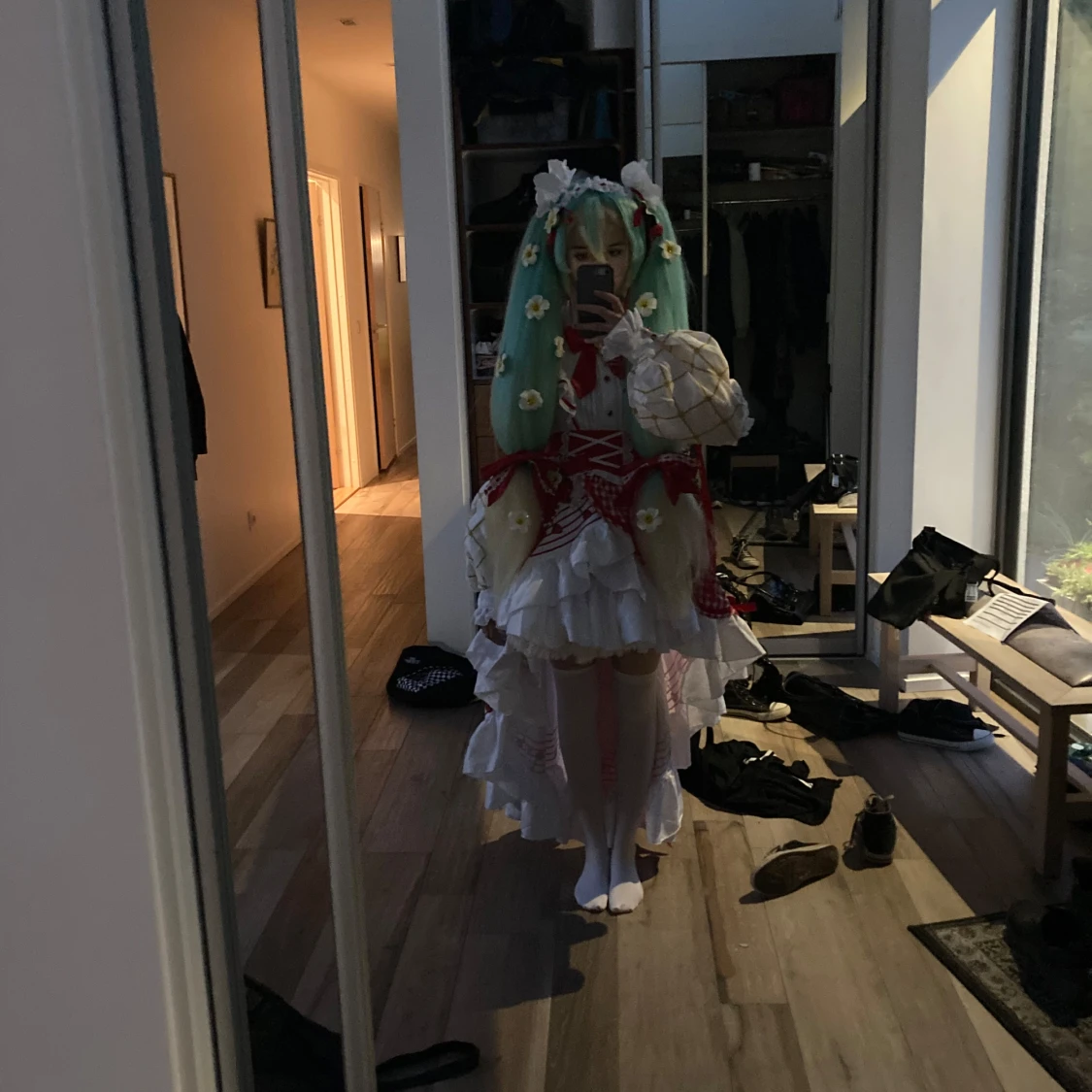 Säljer min strawberry miku cosplay med peruk och skor. Den är använd och har vissa små defekter men den är ändå i bra skick Priset kan diskuteras