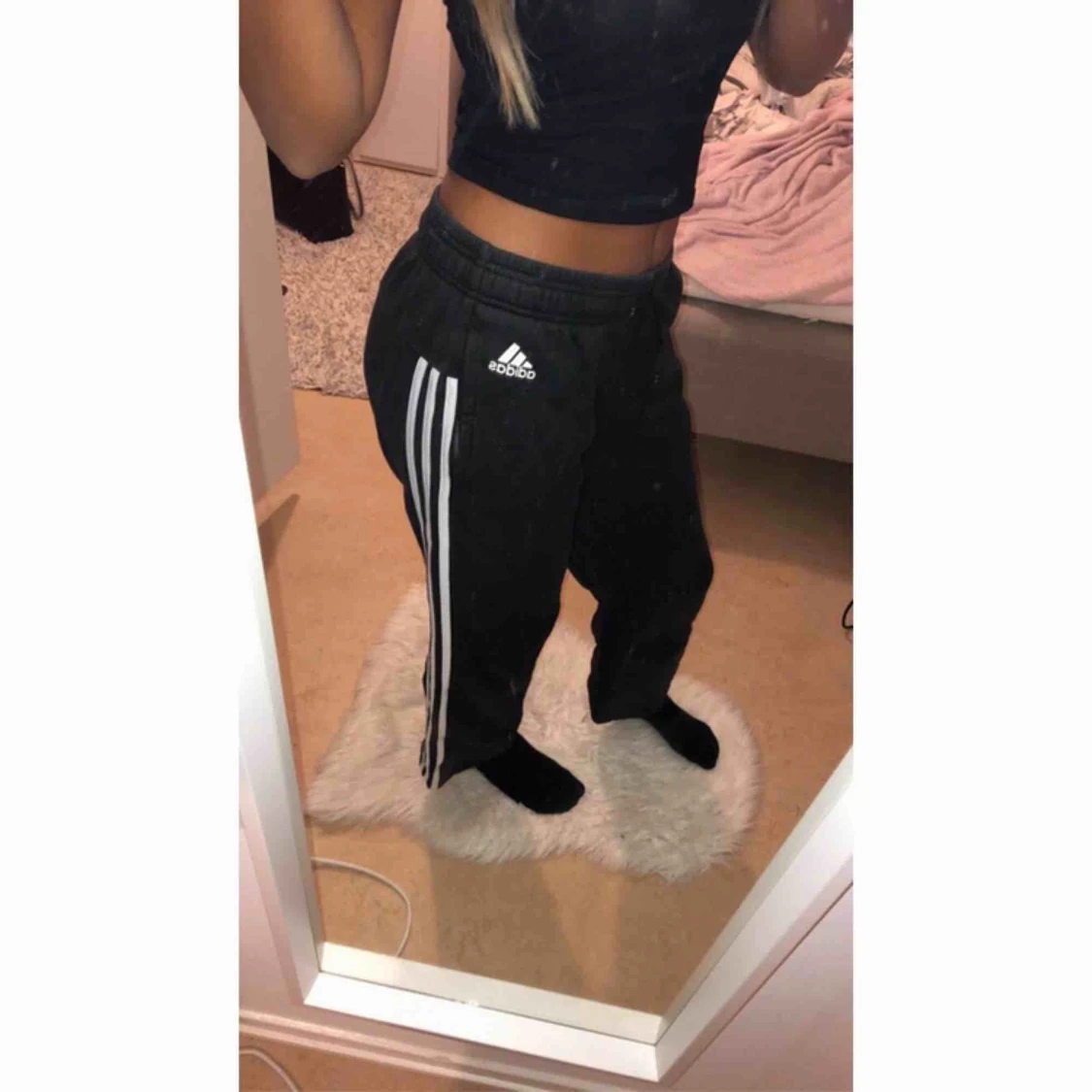 Säljer adidas mjukisbyxor i storlek M. Dom är breda nere vid fötterna men jag är för lång så dom är för korta för mig. (Är ungefär 170 cm) sparsamt använda