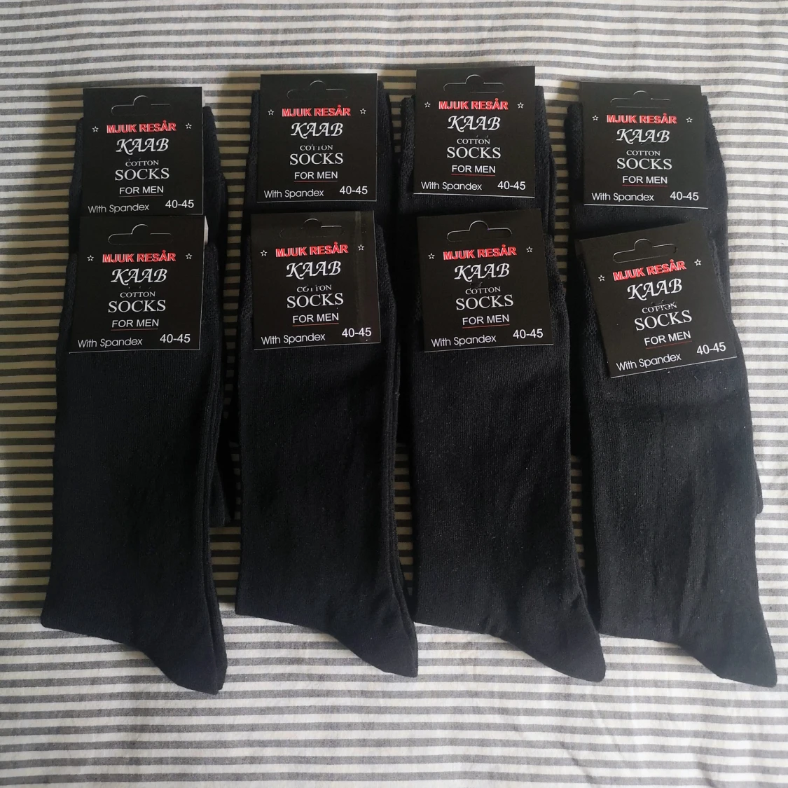Helt nya. Finstickade strumpor i mjuk bomullsblandning, har högt skaft med resår, rök och djurfri hem, kan hämtas i Norra Stockholm.