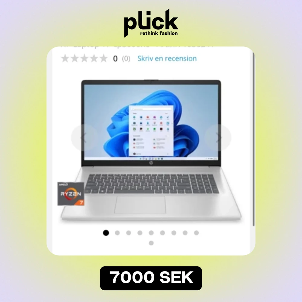 Jag har en 17,3" laptop med AMD Ryzen 7 processor & 1 TB SSD HP Laptop 17-cp3000no. Den har 1 TB och 16 GB RAM. Jag köpte den i september 2023 för att ha den i samband med mina studier men den kom aldrig till användning och jag studerar inte längre.