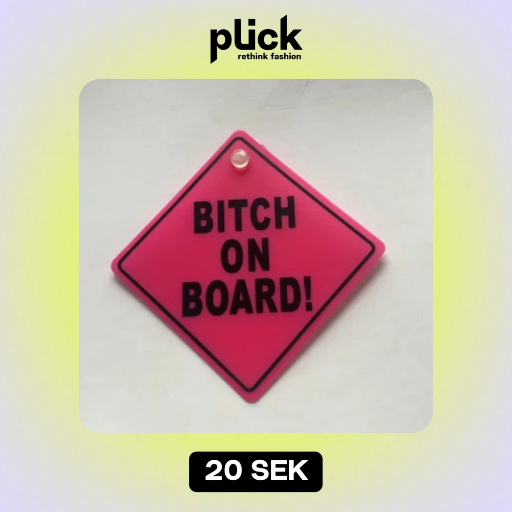 Bitch on board! Skyllt! I rosa Sitter fast med sugpropp Sugproppen går att ta av Frakt tillkommer