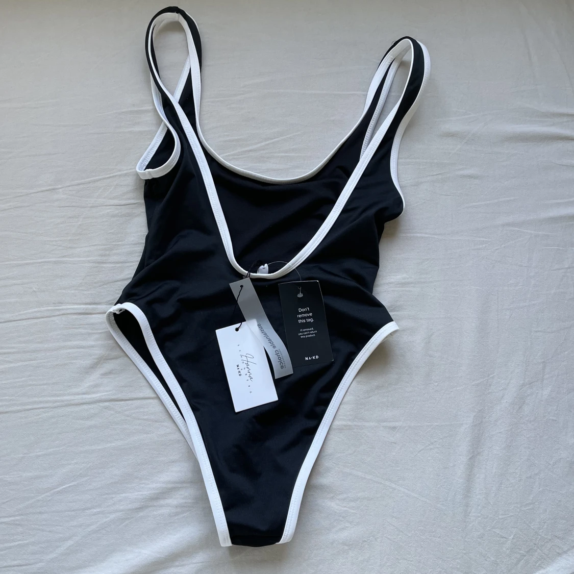 En svart/vit baddräkt från Hanna Schönbergs kollektion med NAKD. Inte använd, lapparna sitter kvar.