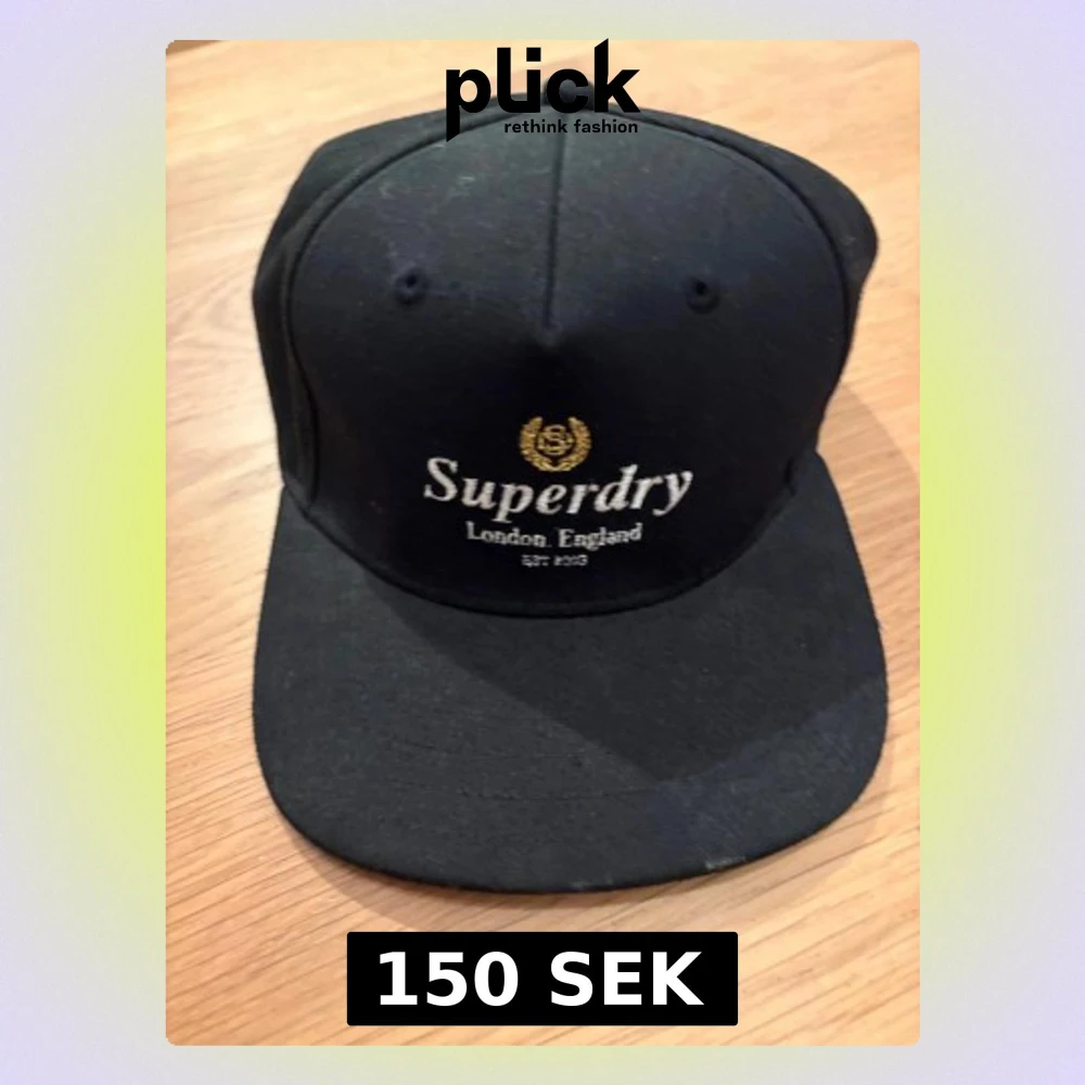 Snygg svart keps från Superdry med broderad logga och gul emblem framtill. Justerbar baktill med metallspänne och orange tagg. Klassisk form med böjd skärm och ventilation. Perfekt för dig som gillar streetwear och vill ha en stilren accessoar.