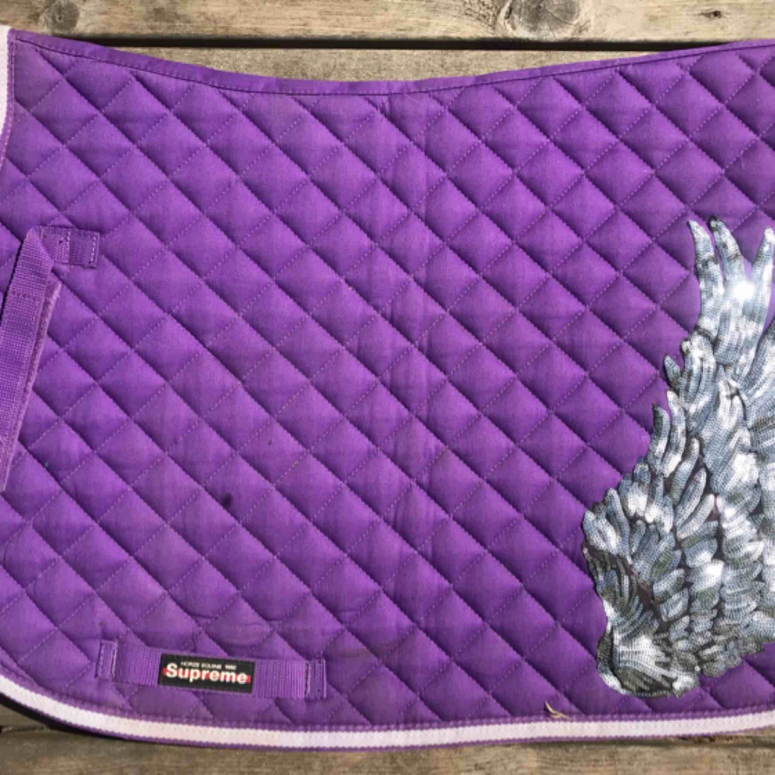 Lila schabrak med silver o paljetter som ska likna en vinge. Använd ungefär 3 ggr. Nypris 350kr, mitt pris 200kr
