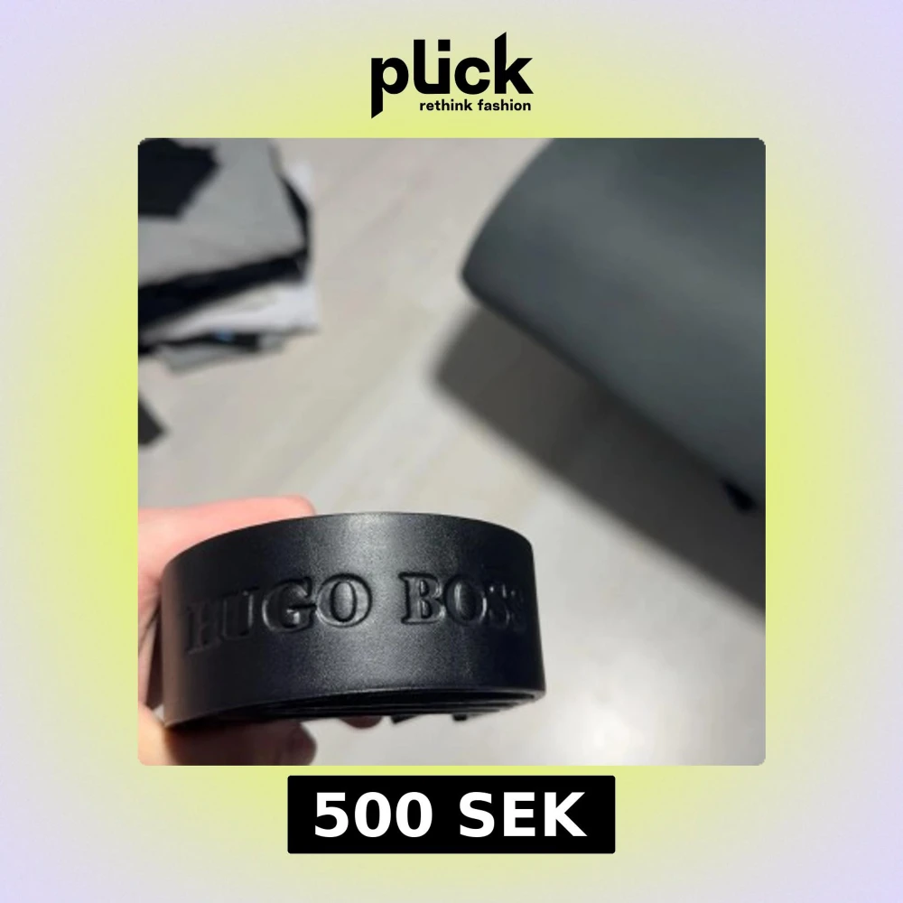 Säljer ett svart bälte från Hugo Boss med präglad logga längs hela bältet och metallspänne med BOSS-gravyr. Bältet är stilrent och passar perfekt till jeans eller kostymbyxor. Materialet är skinn och spännet är i silverfärgad metall.