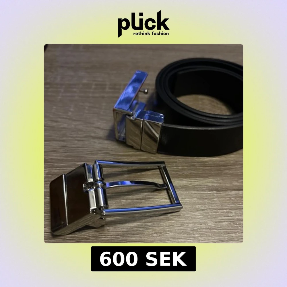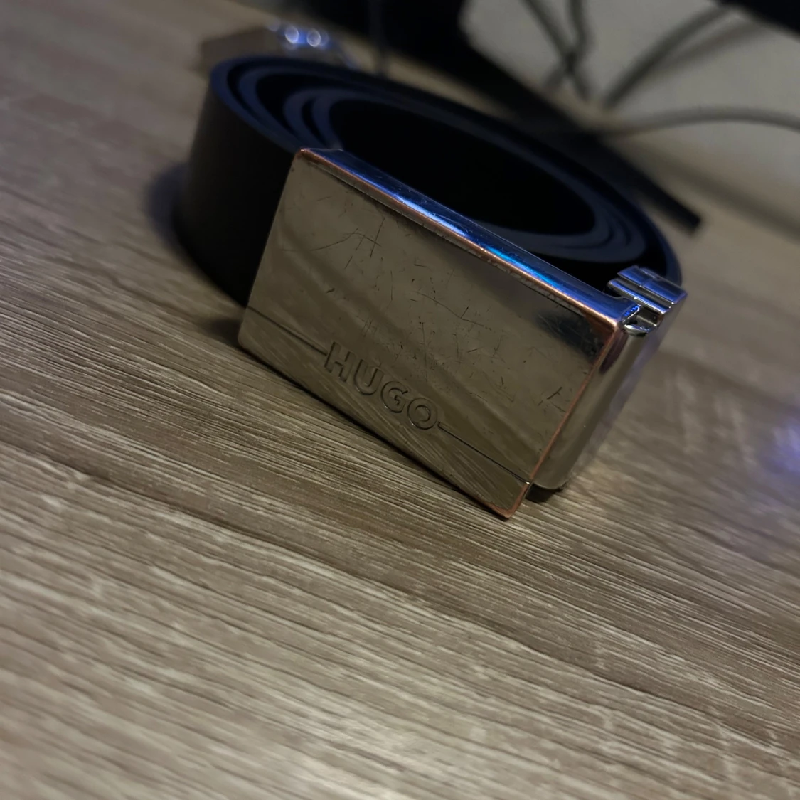Snyggt svart bälte från Hugo med en stilren silverfärgad spänne. Bältet är gjort av skinn och har en modern design som passar perfekt till olika outfits. Spännet har en diskret Hugo-logga ingraverad. 110 cm långt. Sicka om ni har frågor om något och diskutera pris.