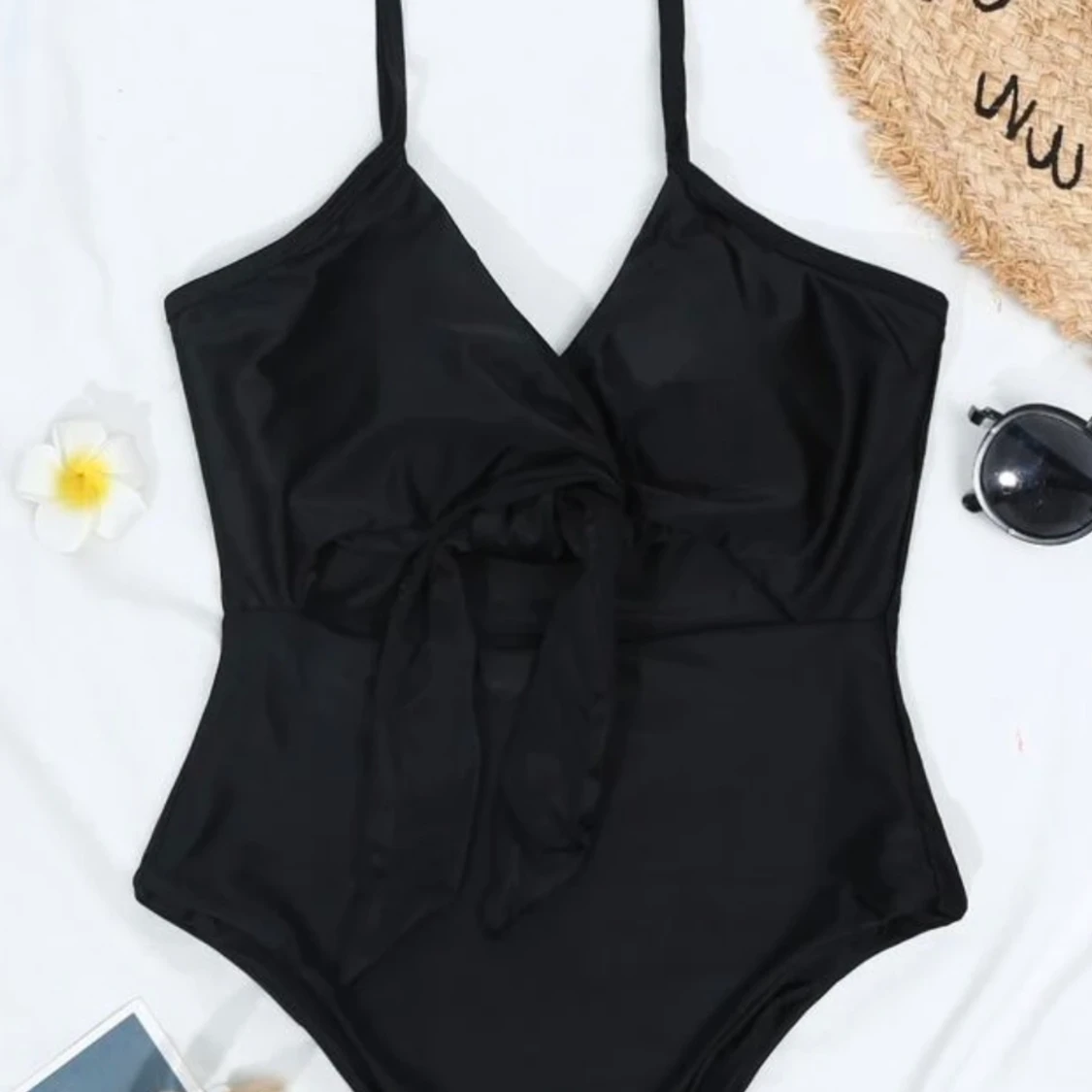 Svart baddräkt med knytning framtill. Aldrig använd