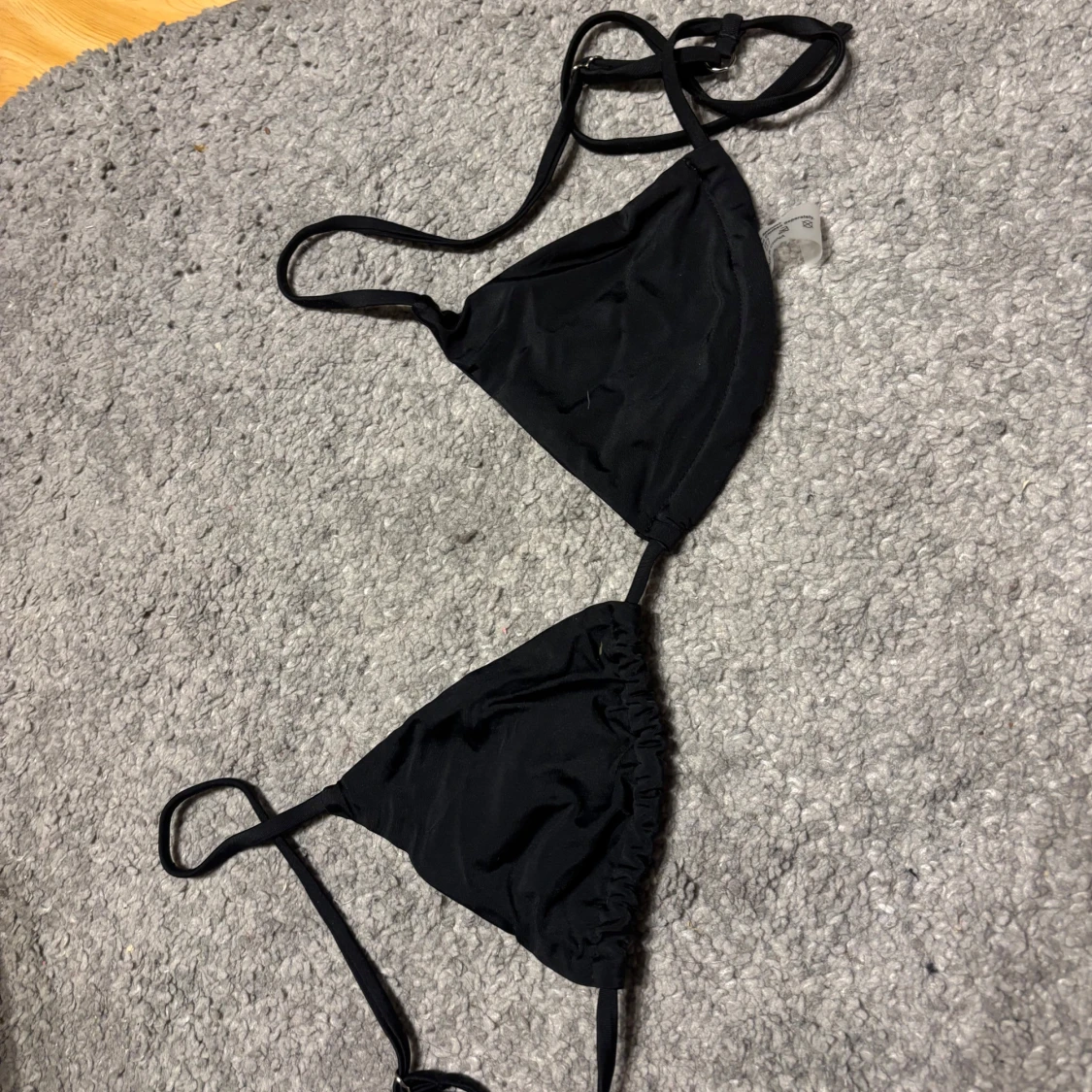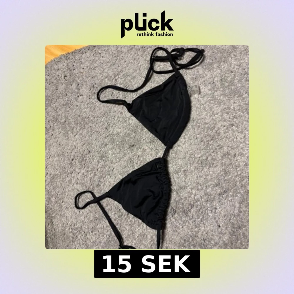 Snygg svart bikini med justerbara knytband. Perfekt för stranden eller poolen. Enkel och stilren design som passar alla tillfällen. Strl S men väldigt liten