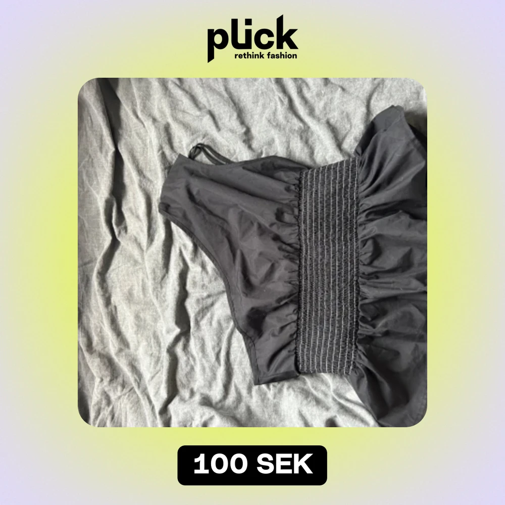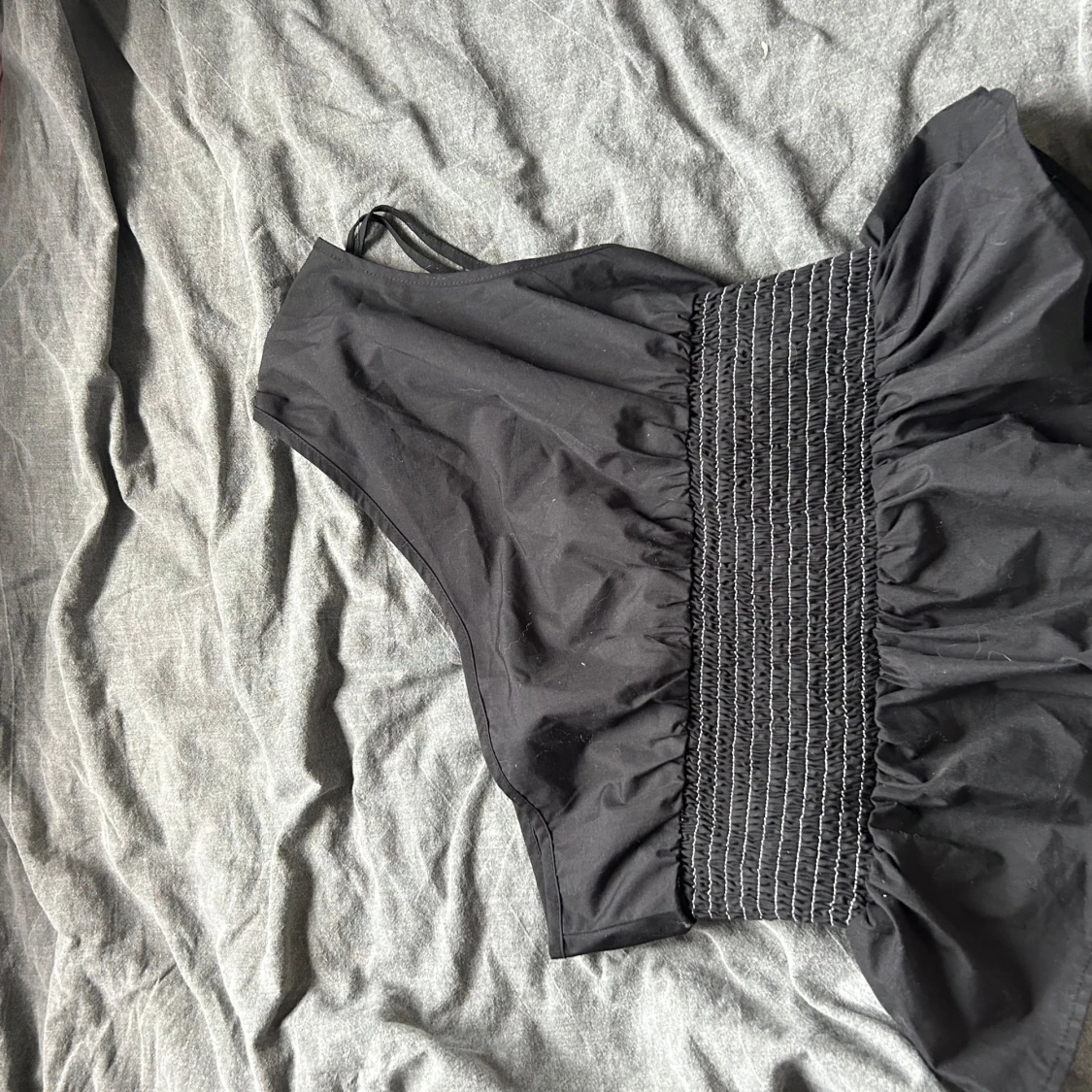En svart överdel med rynkad detalj framtill. Överdelen har en bred resår för extra stöd och justerbara axelband.