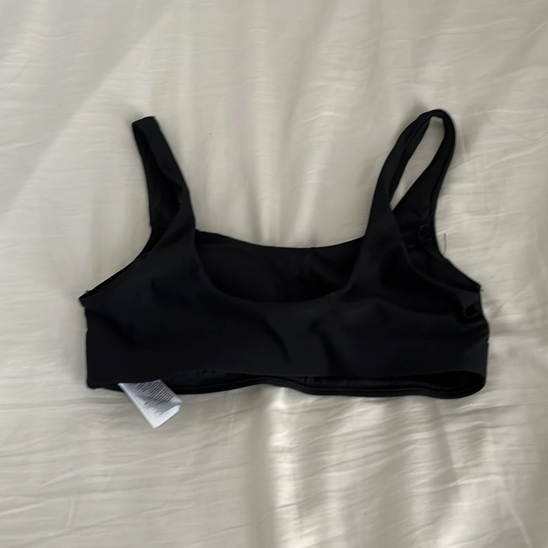 Svart bikiniöverdel från Esmara i stilren och enkel design. Modellen har breda axelband och en rak, sportig form som ger bra stöd. Materialet är mjukt och stretchigt syntet, perfekt för strandhäng eller poolen. Passar dig som gillar minimalistisk stil.