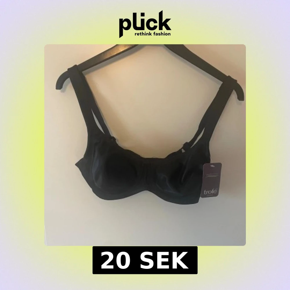 Snygg svart bikiniöverdel från Trofé i storlek 75C. Klassisk modell med breda axelband och slät yta, perfekt för dig som vill ha en stilren look på stranden eller vid poolen. Materialet känns mjukt och bekvämt mot huden.
