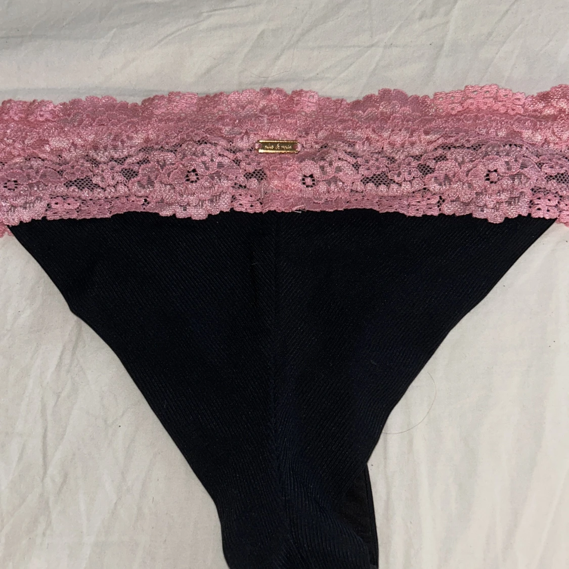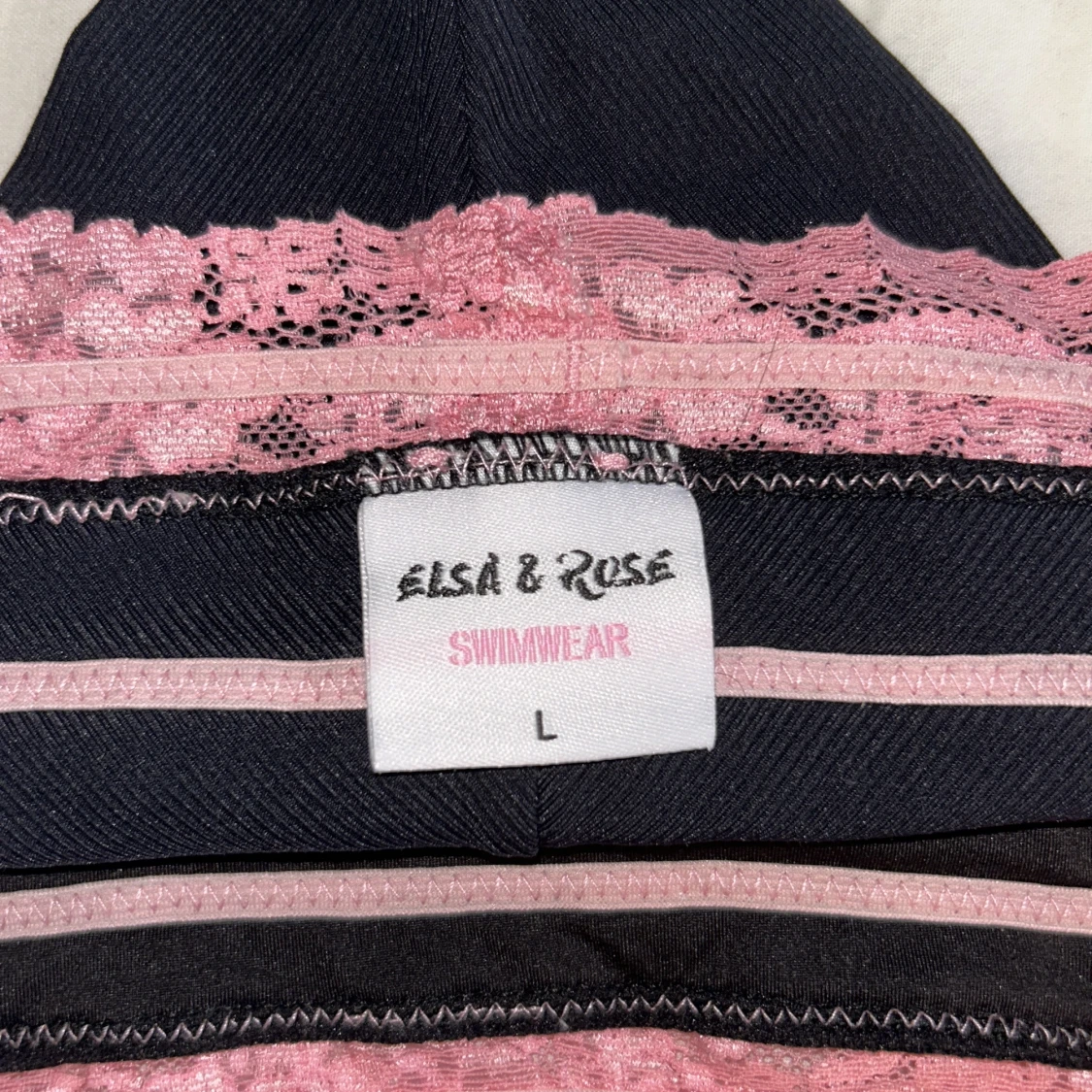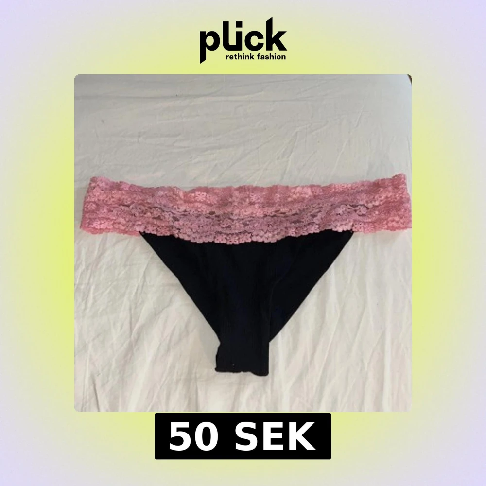 Säljer en fin svart bikiniunderdel från Elsa&Rose med rosa spets. Säljer då den inte passar mig så bra.