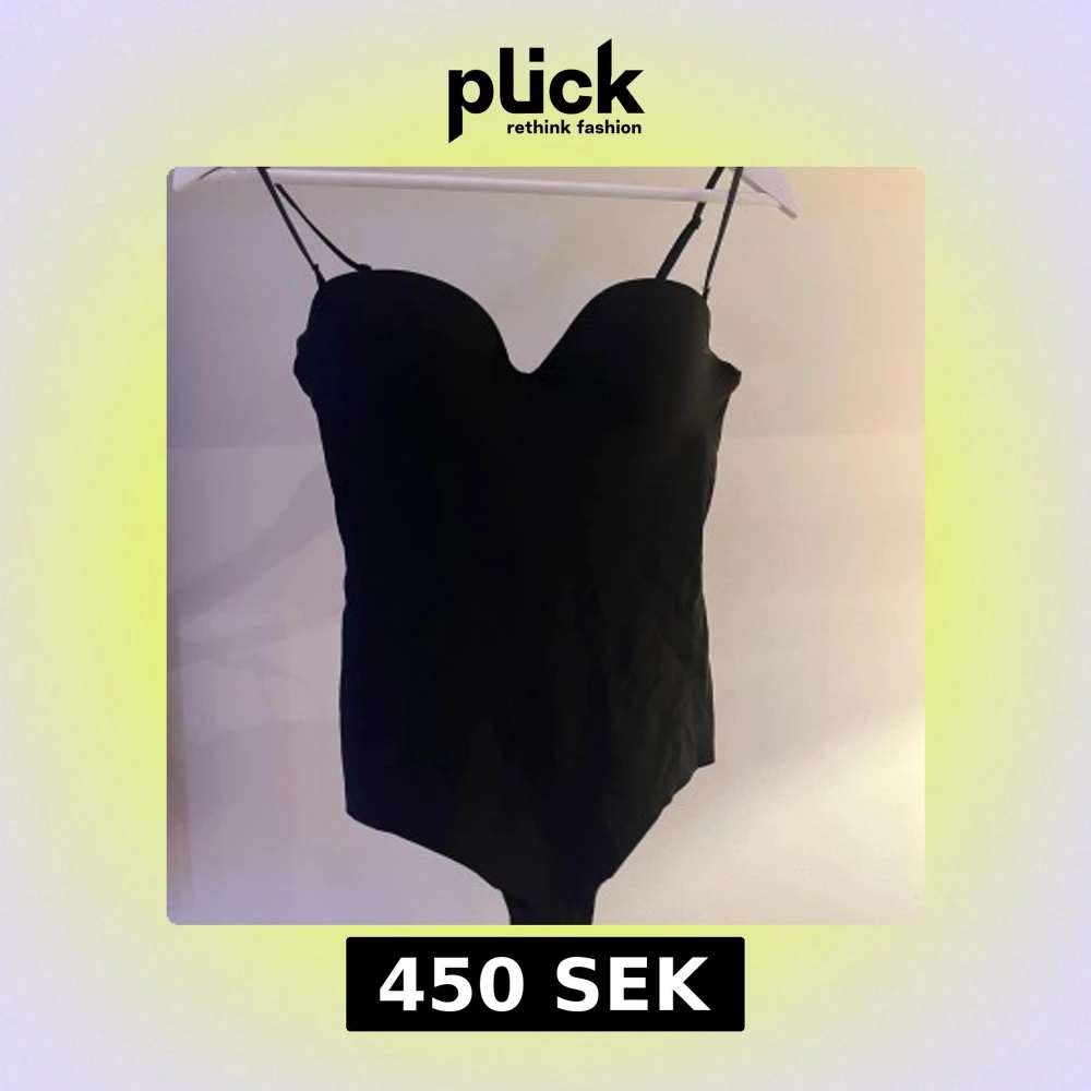 Snygg svart body från H&M med avtagbara axelband och lätt formande effekt. Perfekt för en stilren look. Bodyn har en elegant design med en liten öppning i ryggen. Slutsåld och hög efterfrågan därav priset!🥰