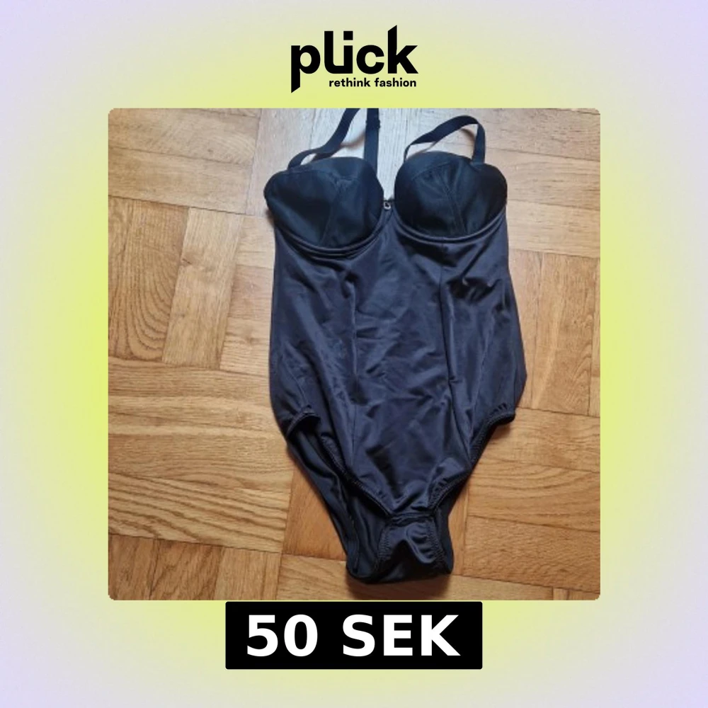 Svart body med knäppe i grenen och avtagbara, justerbara axelband. Stretchig endast provad, från Ulla Dessous.