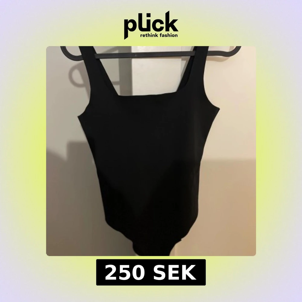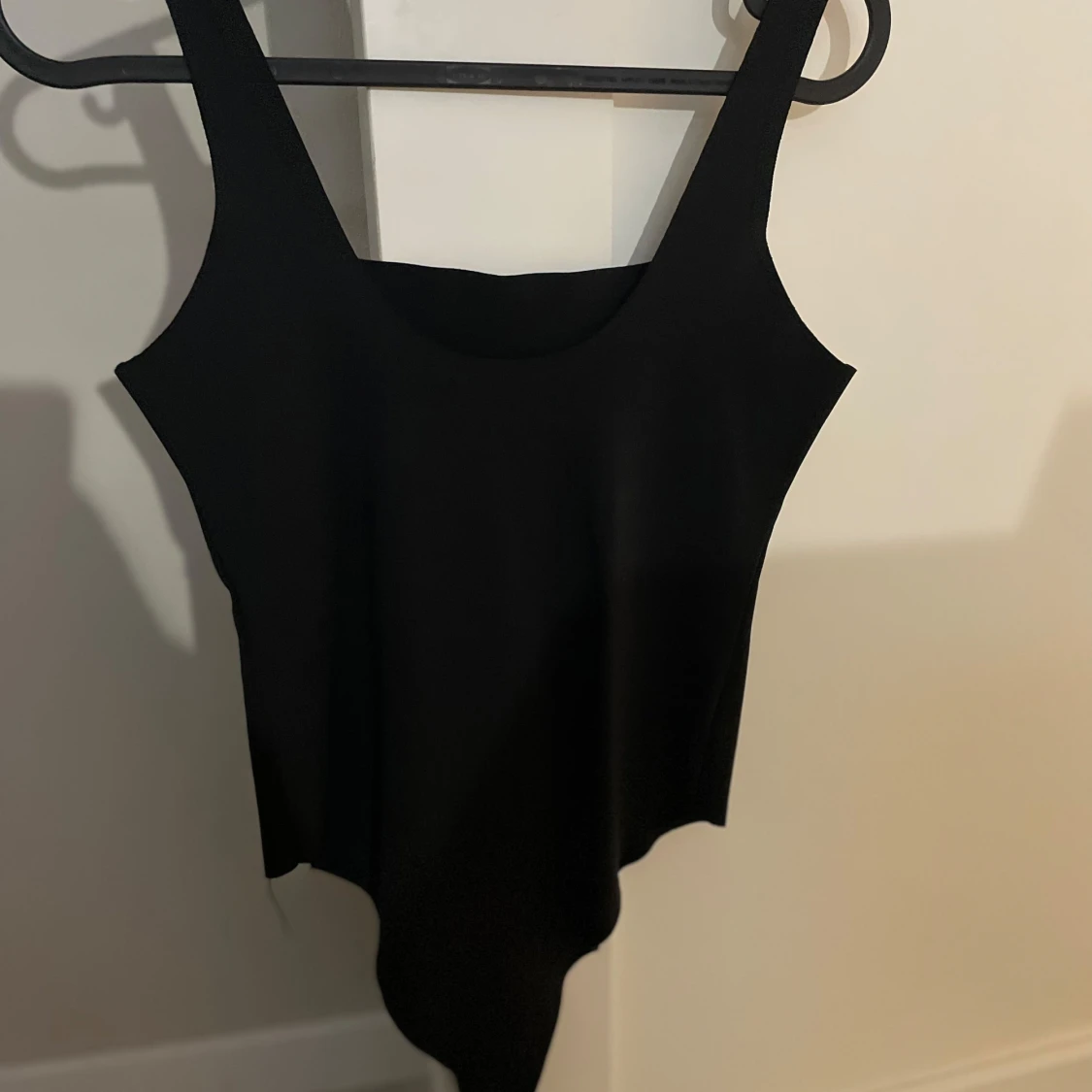 Enkel och stilren svart body från Zara i storlek S. Bodyn har breda axelband, fyrkantig ringning och praktisk knäppning i grenen. Använd 1 gång!