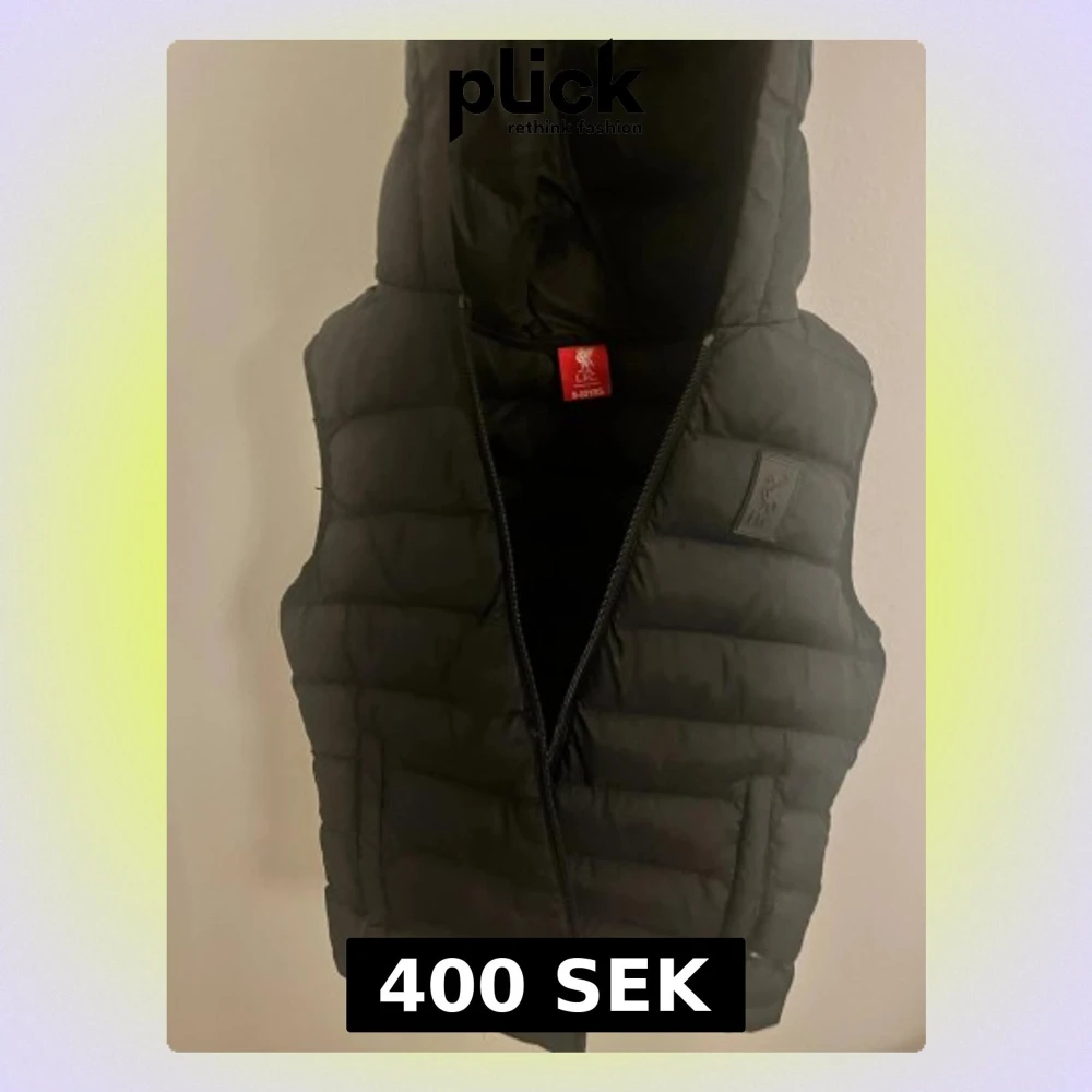 Svart dunväst från Liverpool FC med huva och diskret klubbmärke på bröstet. Västen är quiltad och har dragkedja framtill samt två fickor. Perfekt för kyliga dagar när du vill visa vilket lag du hejar på. Oanvänd, utan prislapp.