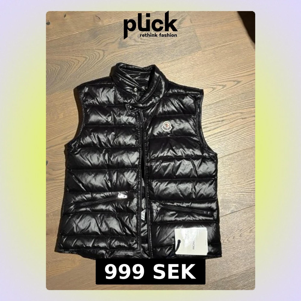 Säljer en stilren och klassisk svart dunväst från Moncler. Västen är lätt, varm och perfekt att bära över hoodie eller tröja under höst/vår – eller som mellanlager på vintern. Aldrig avkänd