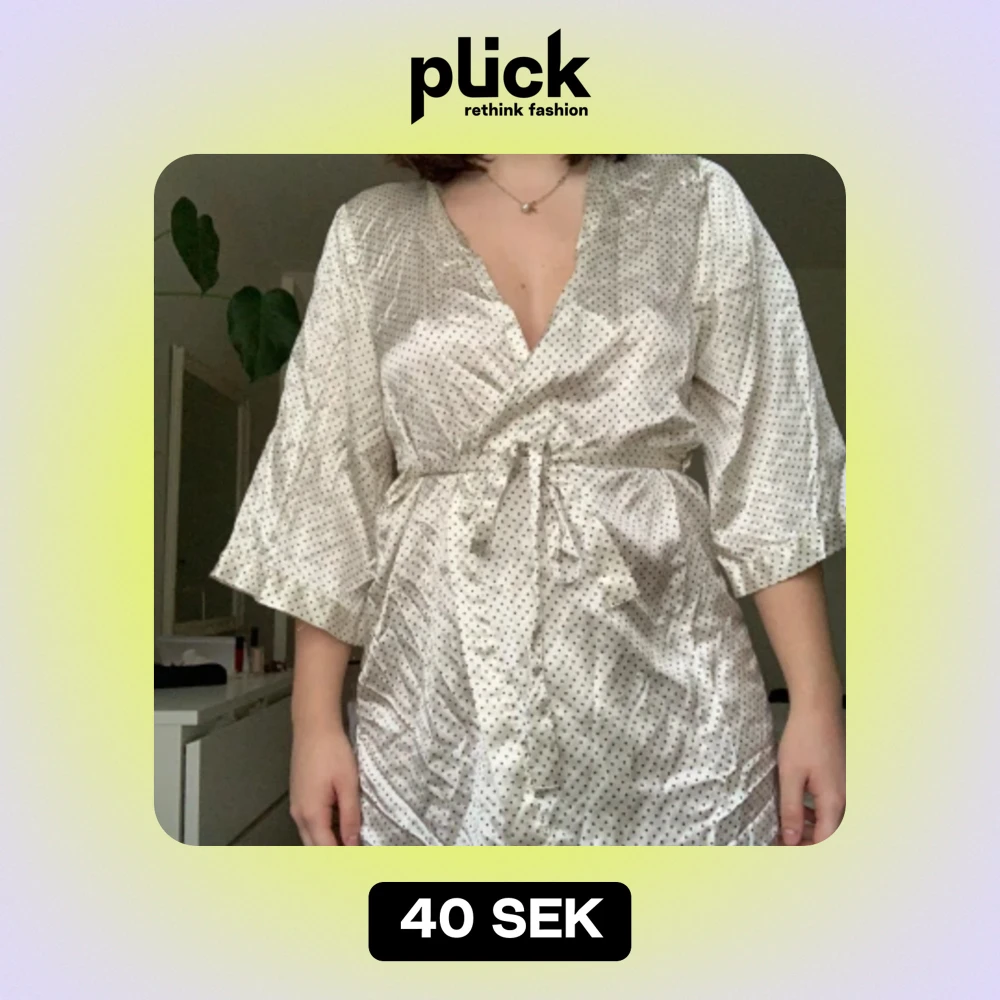En kort krämvit kimono med svarta prickar. Bra skick.