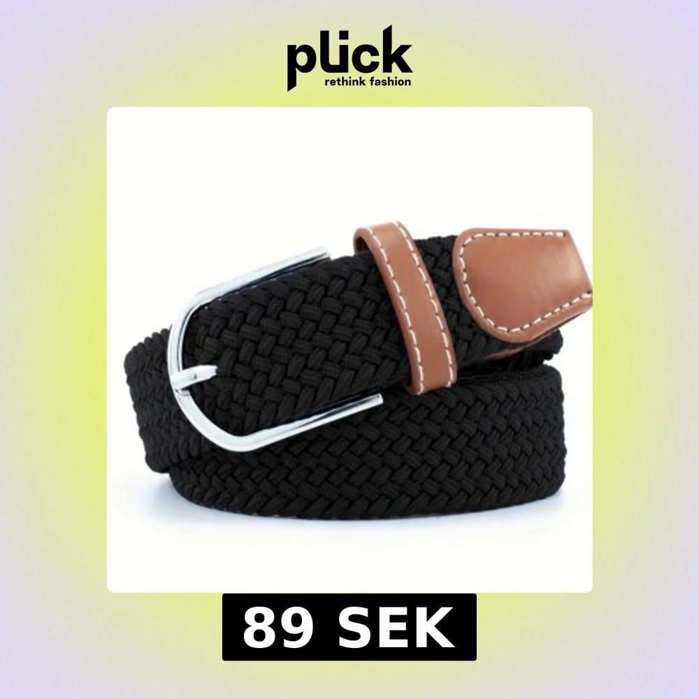 Snyggt svart flätat bälte med bruna läderdetaljer och silverfärgat spänne. Perfekt för att ge en stilren touch till din outfit. Bältet har en klassisk design med en modern twist.