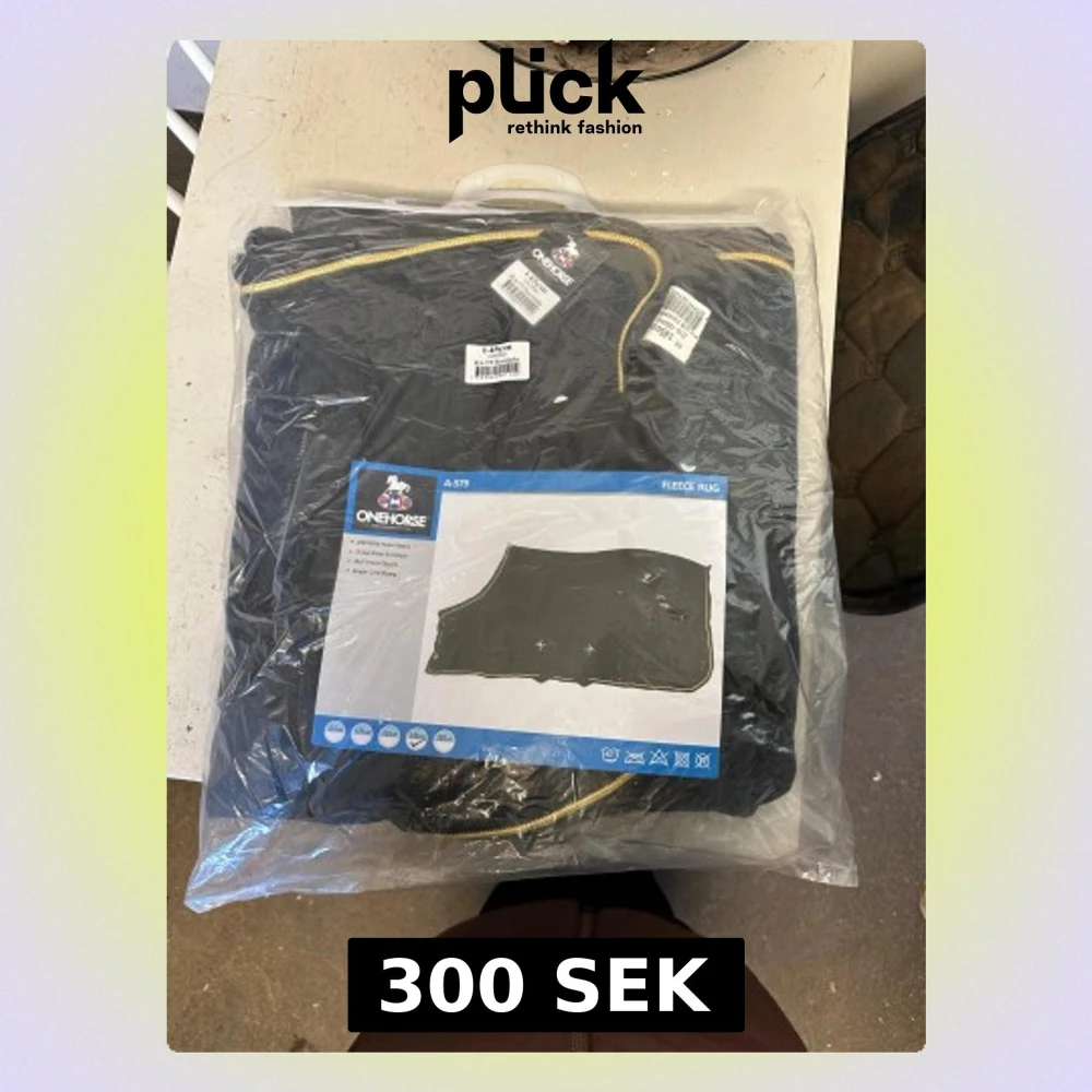Svart fleecetäcke från OneHorse, modell A-579, tillverkat i 250 GSM polar fleece. Täcket har guldig kant, två låga korsgjordar och frontknäppning. Perfekt för ridning och håller hästen varm under kyliga dagar. Helt oanvänt, aldrig tagits ur förpackningen.