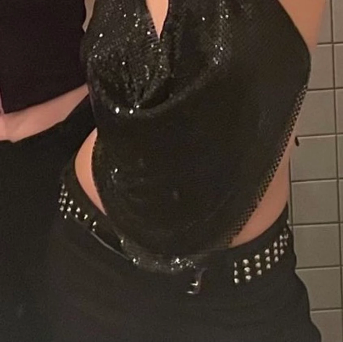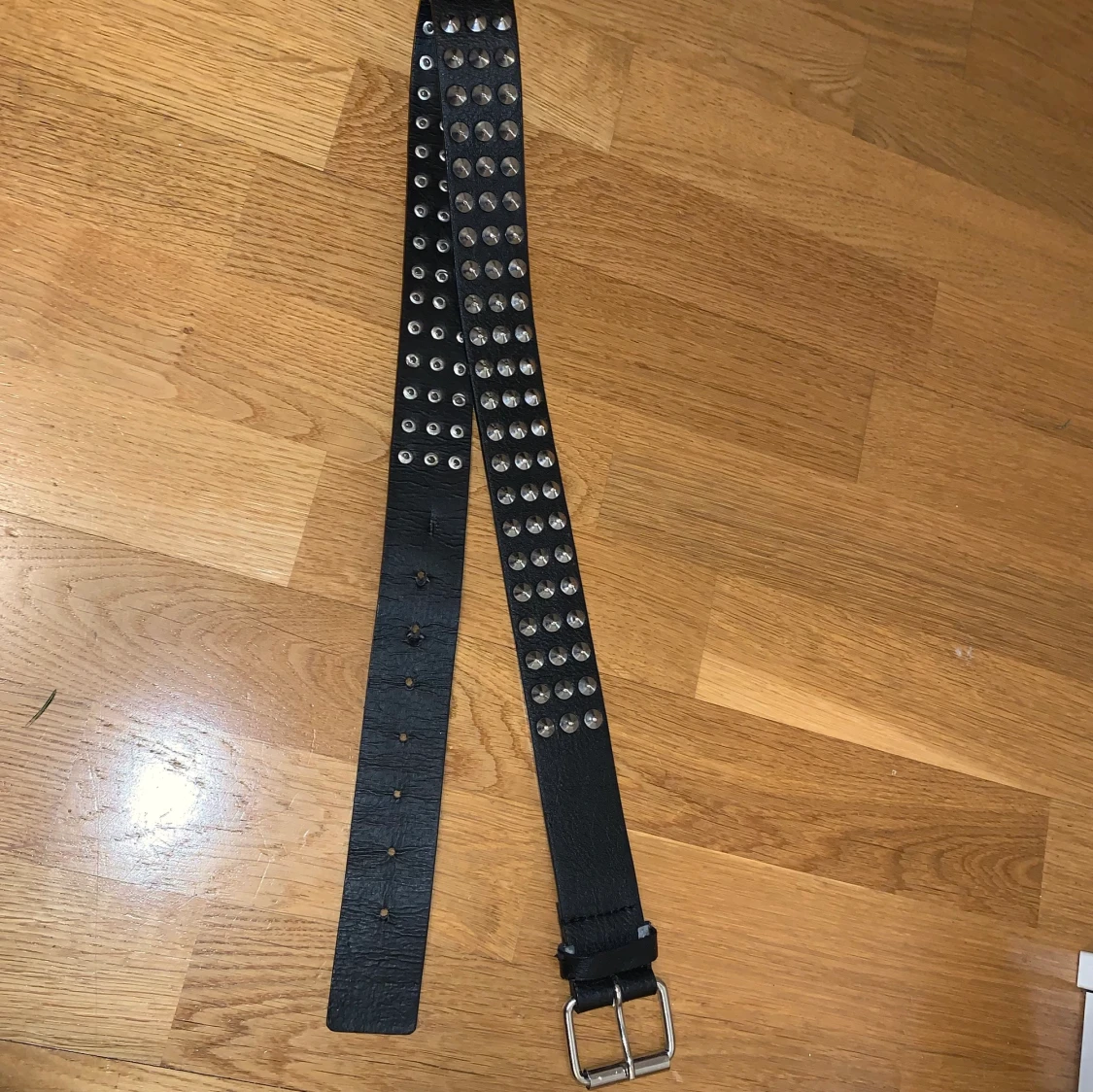 Svinsnyggt bälte med nitar . Ca 1 meter långt, står storlek M på bältet. Frakt tillkommer!