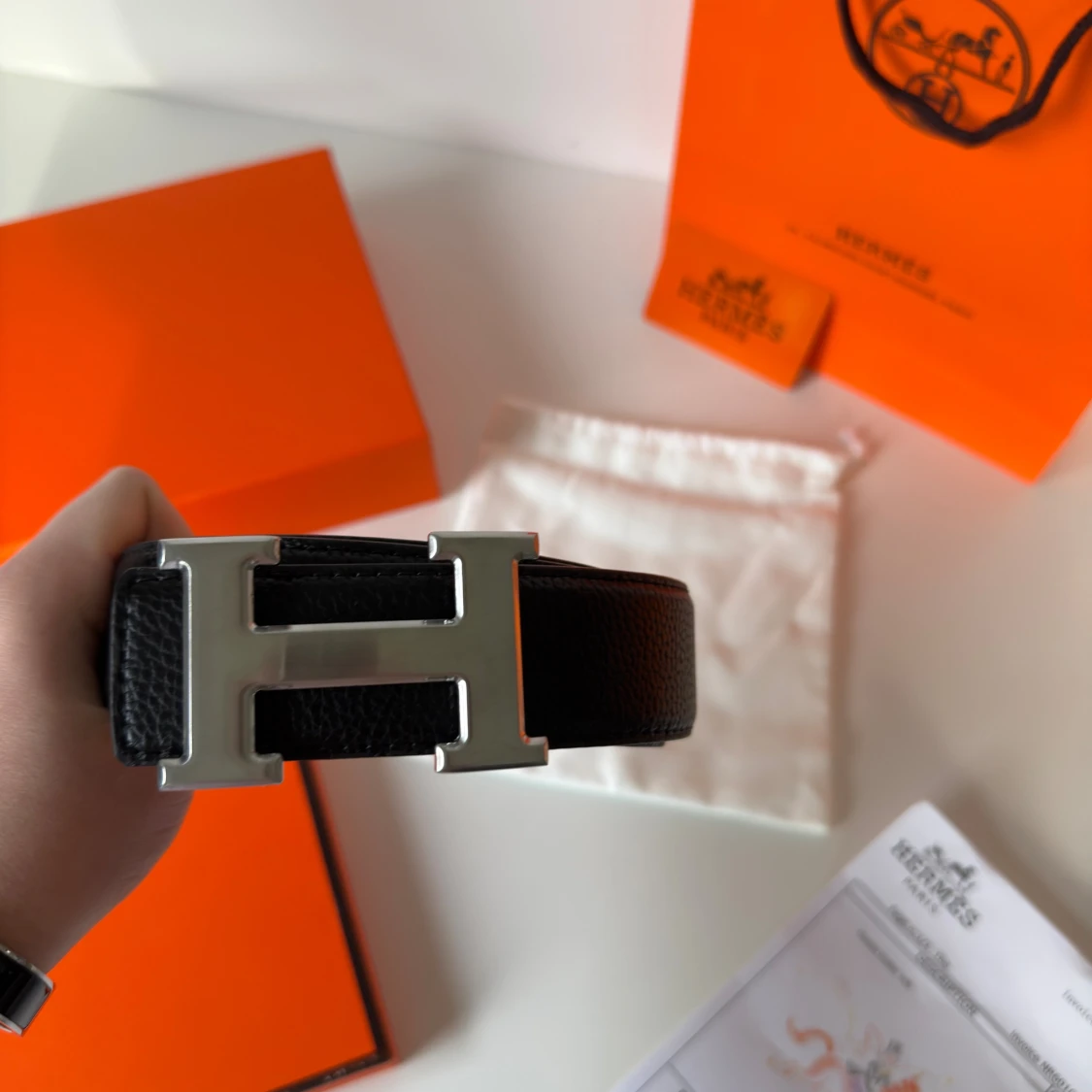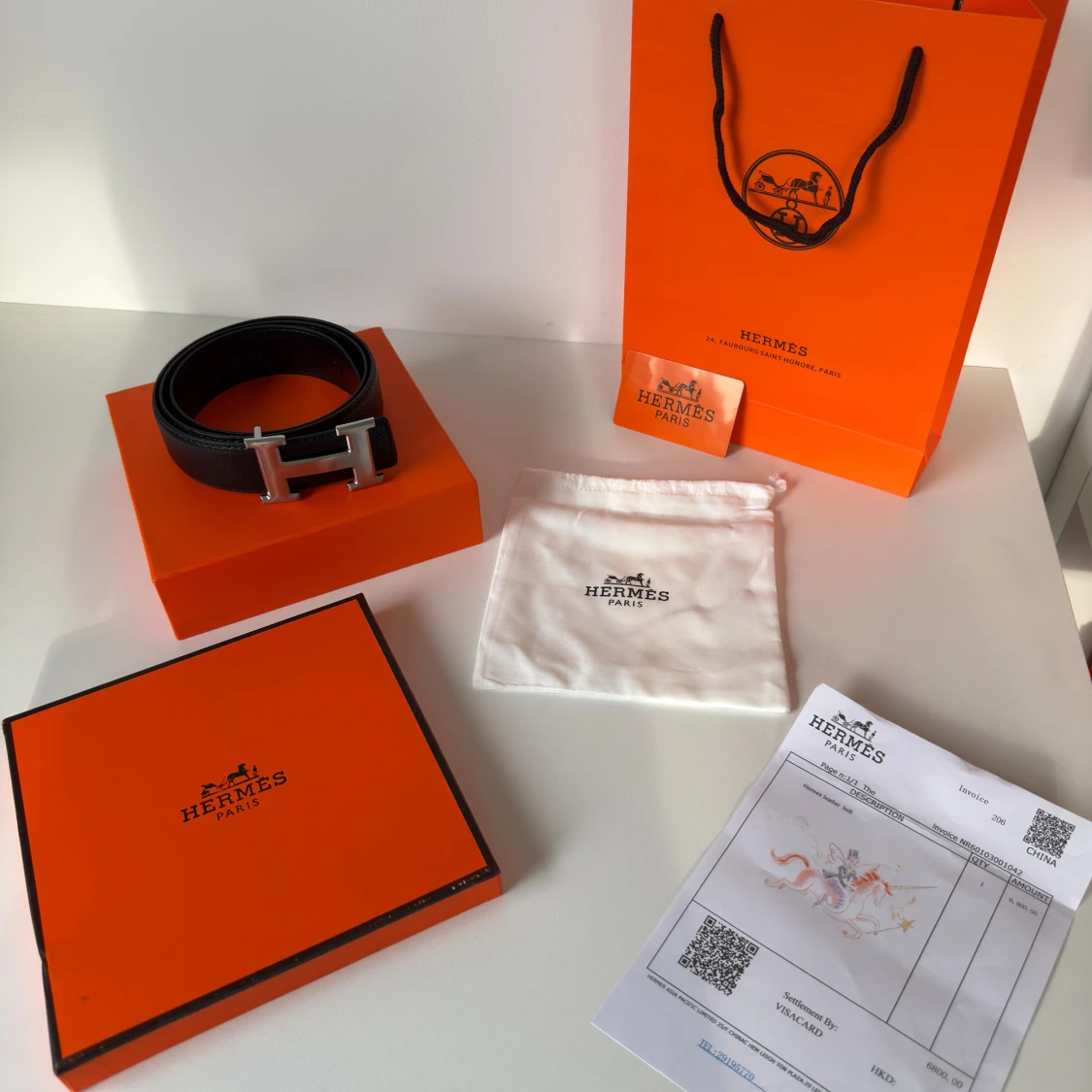 Säljer ett svart bälte från H i äkta skinn med det ikoniska H-spännet i silverfärgad metall. Bältet har en stilren och klassisk design, perfekt för att lyfta vilken outfit som helst. Levereras med originalbox, dustbag och kvitto.