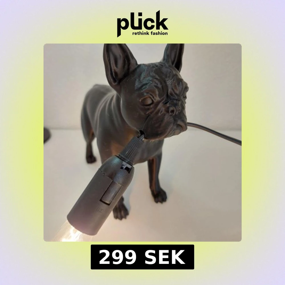 Unik bordslampa i form av en svart hund som håller en glödlampa i munnen. Perfekt för att ge en rolig och modern touch till ditt rum. Lampan har en sladd som går från munnen och en synlig glödlampa som ger ett varmt sken.