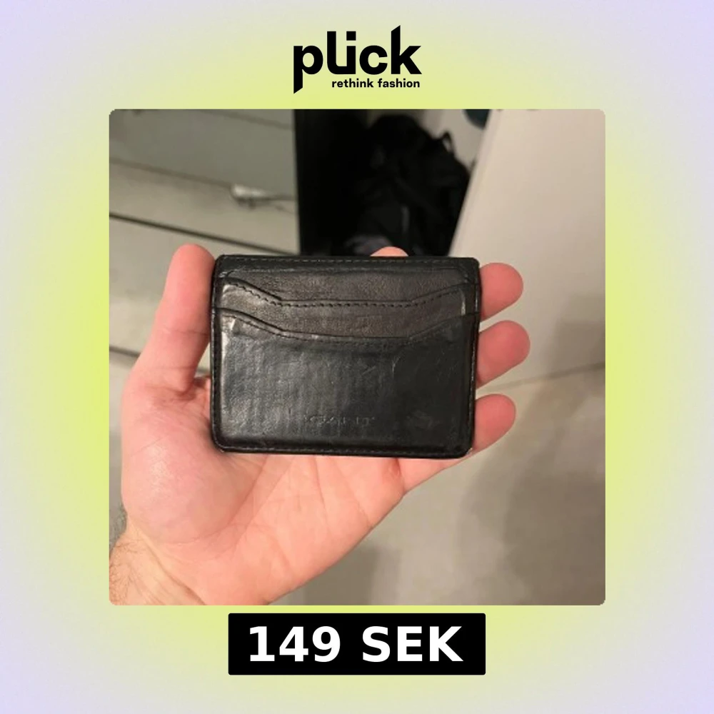 Säljer en stilren svart korthållare i skinn med flera kortfack. Perfekt för att hålla dina kort organiserade och lättillgängliga.